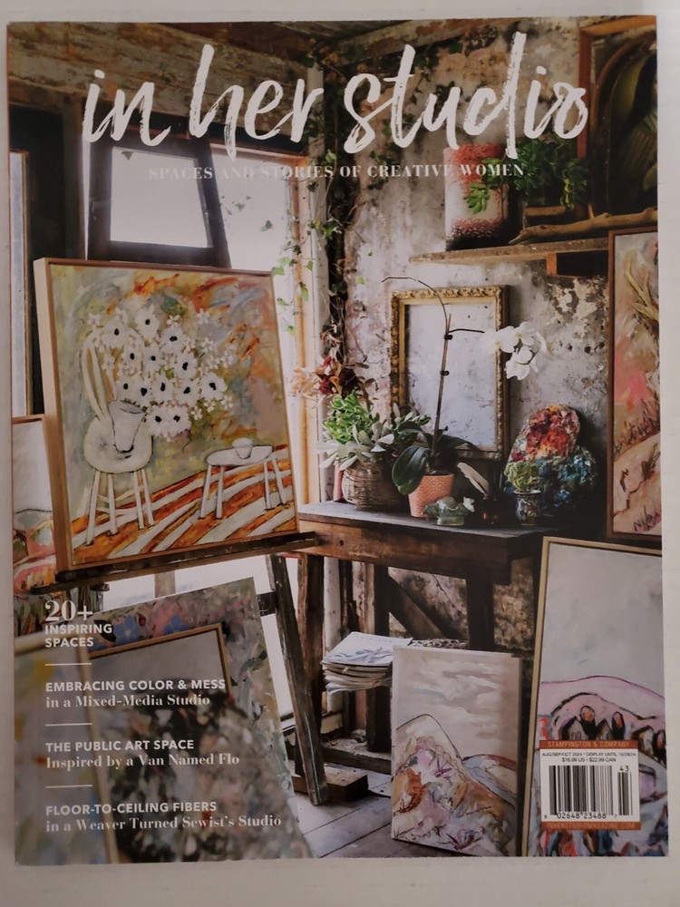 IN HER STUDIO SPACES AND STORIES OF CREATIVE WOMEN AUG/SEPT/OCT 2024 ISSUE VOLUME 7 ISSUE 1 20+ INSPIRING SPACES, EMBRACING COLOR & MESS, THE PUBLIC ART SPACE, FLOOR TO CEILING FIBERS...
