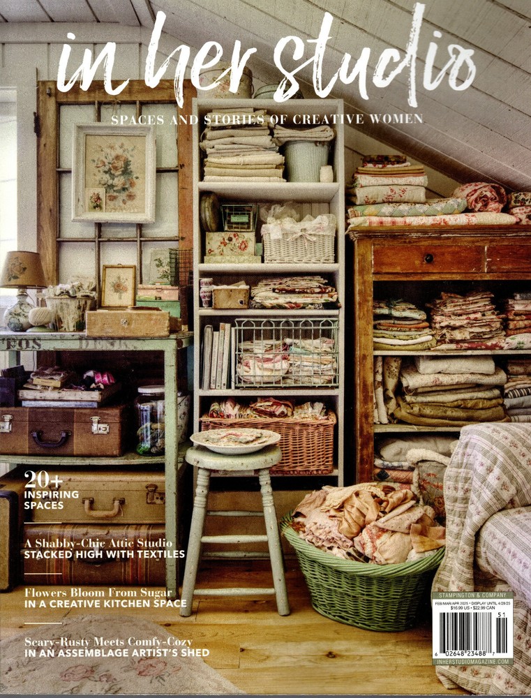 "IN HER STUDIO" Spaces & Stories on Creative Women Vol. 7 Issue 3 20+ Inspiring Spaces A Shabby-Chic Attic Studio Flowers Bloom from Sugar And More! Pages: 160 Feb, Mar, Apr 2025 Shipped in Magazine sleeves Excellent condition- Not Opened