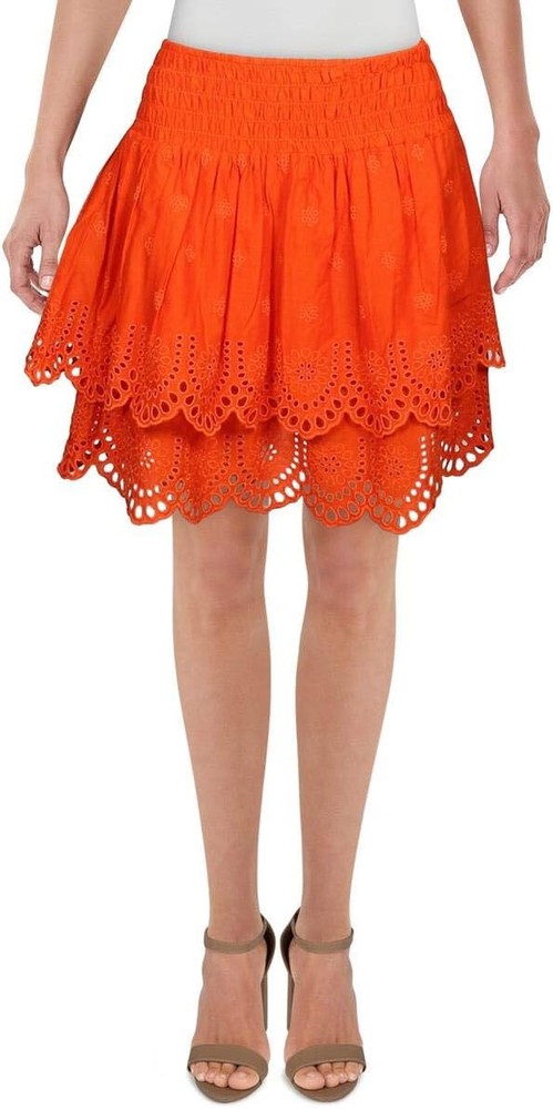 5911-732999521487 INC Women's Tiered Eyelet Skirt Size : S Color : Orange Machine Washable
