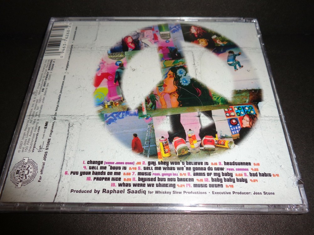 INTRODUCING JOSS STONE by JOSS STONE Rare Collectible NEW CD The CD comes in a jewel case Tracks include: 1. Change - Vinnie James Intro - Running time approximately 35 seconds 2. Girl They Won't Believe It - Running time approximately 3 minutes 16 seconds 3. Headturner - Running time approximately 3 minutes 16 seconds 4. Tell Me 'Bout It - Running time approximately 2 minutes 49 seconds 5. Tell Me What We're Gonna Do Now featuring Common - Running time approximately 4 minutes 22 seconds 6. Put Your Hands On Me - Running time approximately 2 minutes 58 seconds 7. Music featuring Lauryn Hill - Running time approximately 3 minutes 41 seconds 8. Arms Of My Baby - Running time approximately 2 minutes 52 seconds 9. Bad Habit - Running time approximately 3 minutes 41 seconds 10. Proper Nice - Running time approximately 3 minutes 29 seconds 11. Bruised But Not Broken - Running time approximately 4 minutes 15 seconds 12. Baby Baby Baby - Running time approximately 4 minutes 39 seconds 13. What Were We Thinking - Running time approximately 4 minutes 24 seconds 14. Music Outro - Running time approximately 3 minutes 48 seconds Check out my other items ! Be sure to add me to your favorites list !