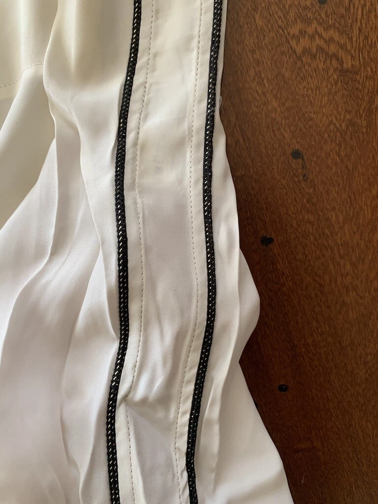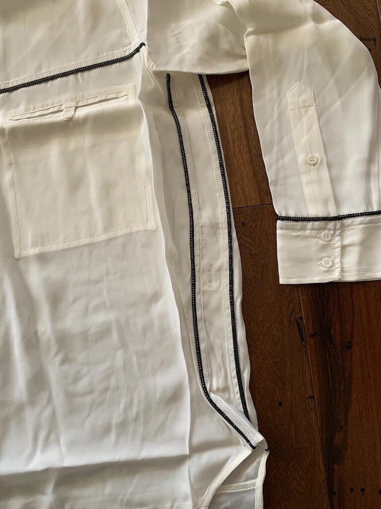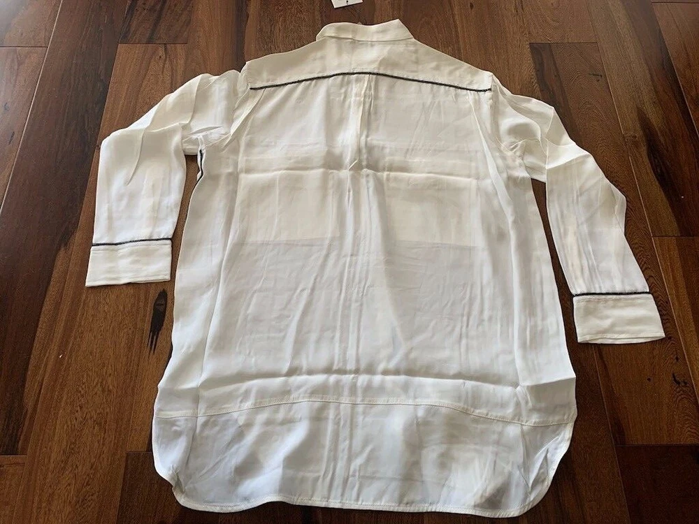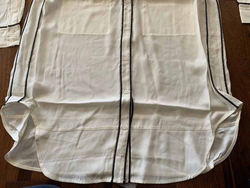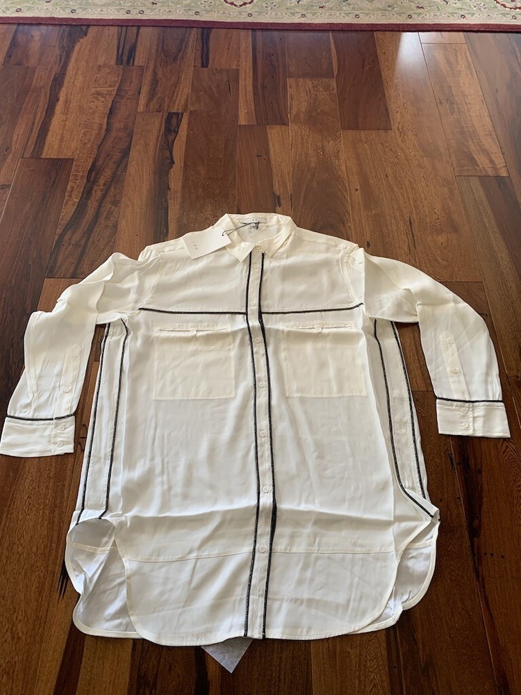 IRO Joss Blouse New with Tags Size 0 100% Silk IRO Joss Blouse Button down front shirt with long sleeves. Beautiful black and gold trim, the pictures of this shirt does not do it justice because it is so soft and elegant. I took pictures of size 1 in this shirt but this listing is for size 0 only. About the Brand: Launched in 2002 by French brothers Laurent and Arik Britton, IRO combines vintage-inspired prints with city style. Their collection features an ever-changing color palette and styles that range from wardrobe staples to on trend pieces.