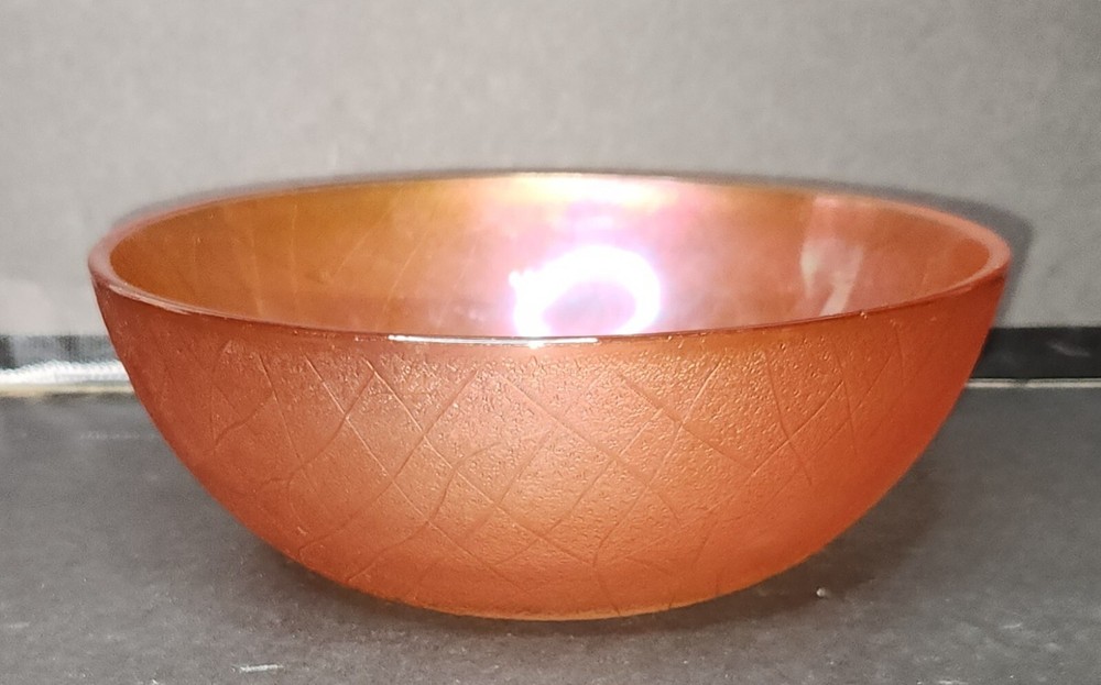 This stunning carnival glass bowl is a true vintage treasure! The vibrant orange crackle finish catches the light beautifully, and the marigold design adds a charming retro touch. Despite being pre-owned, it’s in fantastic condition with only minor wear—just a few tiny bubbles and a flea bite, which add to its authentic character. The size is perfect for display or as a unique decorative piece. Shipping was prompt, and the seller provided clear details. Absolutely love this eye-catching addition to my collection—no regrets!