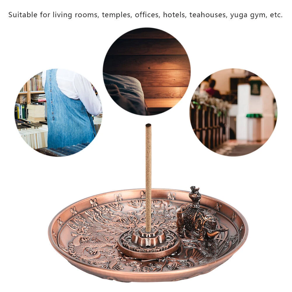Feature: 1. Made of high quality zinc alloy material, which is corrosion‑resistant and durable 2. Possess clear carving and glossy lines, the appearance is designed in purple bronze color with dragon and phoenix pattern 3. Equipped with two removable incense holders with holes of different diameters, can accommodate a variety of incense types 4. Can be used as decorations, suitable for various places such as living rooms, temples, offices, hotels, teahouses, yoga gym, etc. 5. This unique antique style incense holder will add elegant atmosphere for your home Specification: Item Type: Incense Holder Category: Incense burner Pendulum Form: Pendulum Process: Pressure casting Size of Dragon Phoenix Plate: (manual measurement for reference) Diameter: Approx. 10.8cm / 4.3in, height: Approx. 1.8cm / 0.7in Size of Incense Holder: Diameter: Approx. 3.4cm / 1.3in, height: Approx. 1cm / 0.4in Size of Elephant Incense Holder: Length: Approx. 3cm / 1.2in, height: Approx. 2.8cm / 1.1in Package List: 1 x Dragon Phoenix Plate 1 x Incense Holder 1 x Elephant Incense Holder