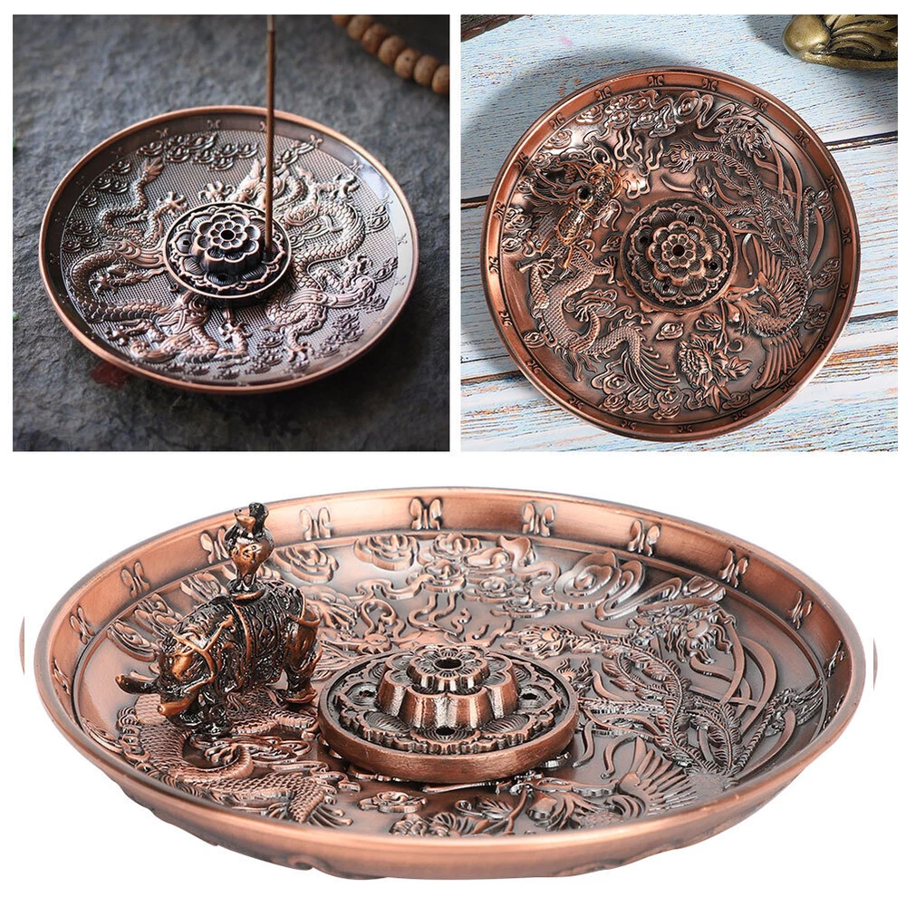 This incense holder is absolutely stunning! The dragon and phoenix design is intricately carved with a beautiful purple bronze finish, adding an elegant touch to any space. Made of durable zinc alloy, it’s built to last and resists corrosion. The two removable holders fit different incense sizes, making it super versatile. Perfect for home decor, meditation spaces, or even offices—it’s both functional and a gorgeous statement piece. Love the antique vibe it brings!