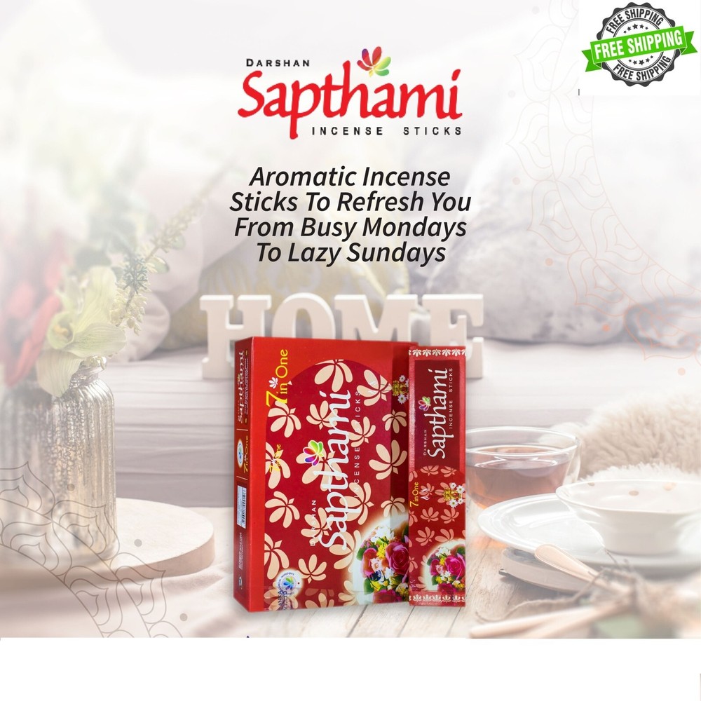 Welcome to my store Incense Sticks Sapthami Natural Fragrance Genuine Box One Traditional Joss New Sapthami are manufactured by using high quality, eco-friendly raw materials. Sapthami products produced under this range have to go through stringent quality checks in order to ensure that they meet the international standards. Sapthami Incense Sticks are exclusive incense sticks that give you the best Garden fresh floral fragrances. This product consists of 7 different fragrances. 1. Indian Sandal - A Sandal aroma to awaken your energy and mind 2. Floral Bouquet - Gives you the fragrance of Garden-Fresh flowers 3. Fruity Flower - A perfect balance of fruit & floral fragrances 4. Egyptian Musk - The fragrance which even the Pharaohs loved 5. Natural Flora - Gives true Indian Flora Incense 6. Fancy Lily - A floral scent that is beautifully captivating 7. Amber Fresh - Extremely charming nature fresh fragrance Length of the stick 20.32 cm Burning Time 30 Minutes Packing Type Rectangular Packet 1pkts X 7 scent pack scent pack include 4 sticks. Direction For Use:- • Place incense stick/agarbatti away from flammable materials on a fireproof and heat resistance surface/incense burner. • Light the coated end of incense stick / agarbatti , allow flame to catch; gently blow out the flame. Caution:- • Never leave burning incense unattended. • Keep out of the reach of children. • Incense is not edible. • Use agarbathies / incense sticks with care and in a well ventilated area. Contact us We can be contacted at any time through eBay messages if you have any questions, comments or product requests. We will respond to you within 24 hours and do our best to help you out! We encourage our customers to contact us with any questions or concerns! We'd like to be sure you are completely satisfied with your purchase. If you have any concerns about your purchase, please contact us to resolve any issues before leaving negative feedback or opening a dispute. We will respond to you within 24 hours and do our best to resolve it. If you are satisfied with your purchase, please do not forget to Leave Positive Feedback for us. Your positive feedback is extremely valuable to us. Our goal is to give the best online shopping experience to you. Payment ● payments managed by ebay Shipping ● Only shipped to the shipping address provided. Please double check the address prior the final payout ● Time of delivery depends on the destination, weather conditions, health & other situations in the countries of Transit.. ● Import duties, taxes and charges are not included in the item price or shipping charges. Returns ● For any returns or refunds, feel free to contact us within the first 30 days after the receipt of the package 30 days returns accepted & buyer pays the return shipping ● Refunds will be granted to the Money Bank . Thank you for visiting my store Happy Purchasing…… Have a nice day……..