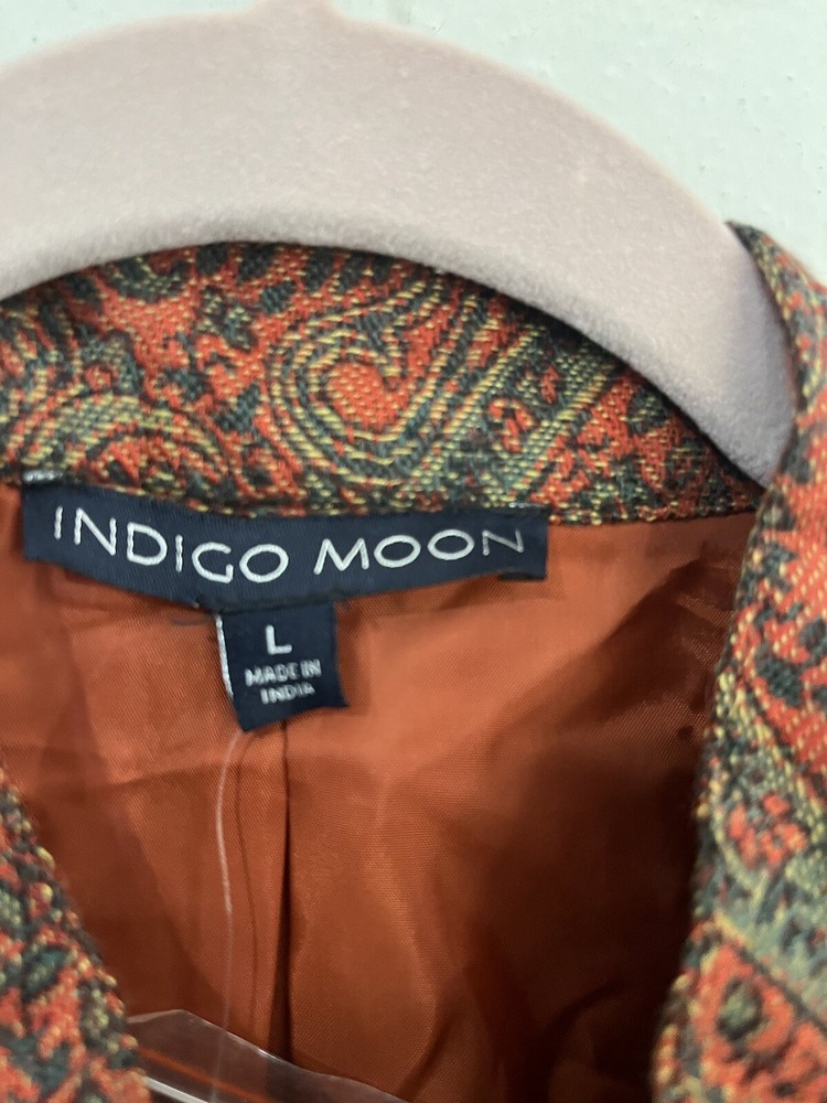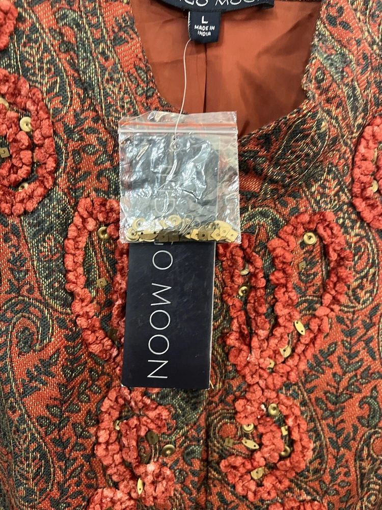 Indigo Moon Embroidered And Beaded Mid Length Jacket Mock Neck Rust Orange Large New with tags no flaws Chest flat on table 22 inches Shoulder to hem length 34 inches...