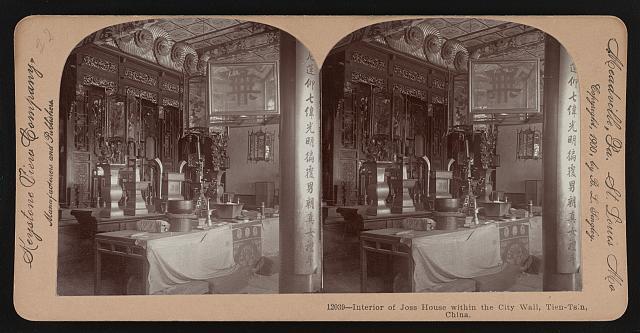 Interior of Joss House within the city wall Tien tsin China HAVE A LOOK IN MY STORE FOR OTHER ITEMS OF INTEREST AND USE THE SEARCH BAR TO LOOK BY NAME, TOPIC, LOCATION or SUBJECT You are bidding on a large photo, the photo is in excellent condition, it is sized 9x6 inches and has been professionally produced. Items are posted immediately for your satisfaction and this has been reproduced from the negative.