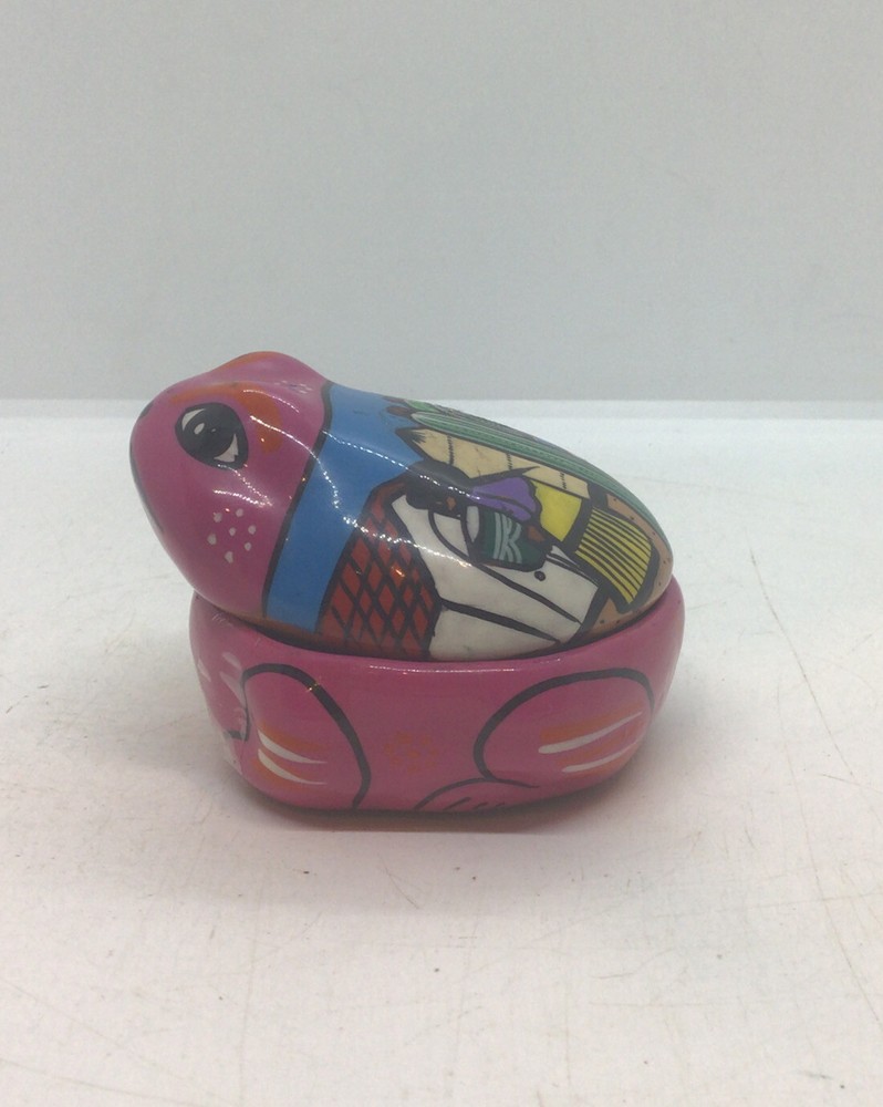 Isidoro Mexico Pink Orange Stripe Ceramic Frog Trinket Box - Town Cactus....