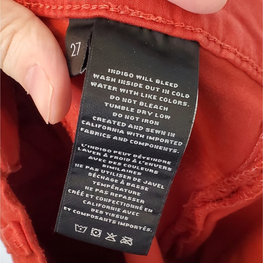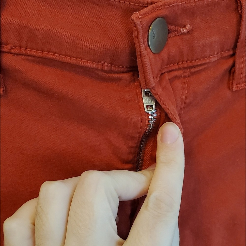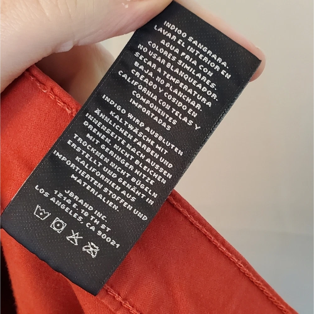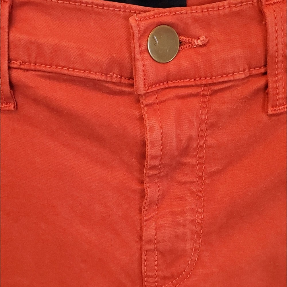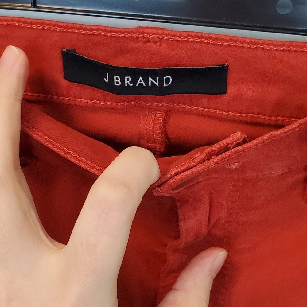 <![CDATA[<div>J BRAND Tangerine Bossa Nova Super Skinny Pants. Size 27. In very good used condition; minor fading throughout. Description: Tangerine J Brand mid-rise skinny leg pants with dual mock pockets at front, dual pockets at back, and button and zipper closure at center front. - Mid-rise red skinny jeans perfect for casual outings or adding a pop of color to your going-out wardrobe. - Stretchy material ensuring a comfortable fit. Measurements: 13" waist across (stretches up to 15" across), 30" hip, 8.5" rise, 28.75" inseam, 9" leg opening. Fabric: 61% Lyocell, 36% Cotton, 3% Elastane. Keywords: red, mid-rise, skinny jeans, stretchy, casual #RedJeans #MidRiseDenim #SkinnyJeans #FashionStaple #CasualChic