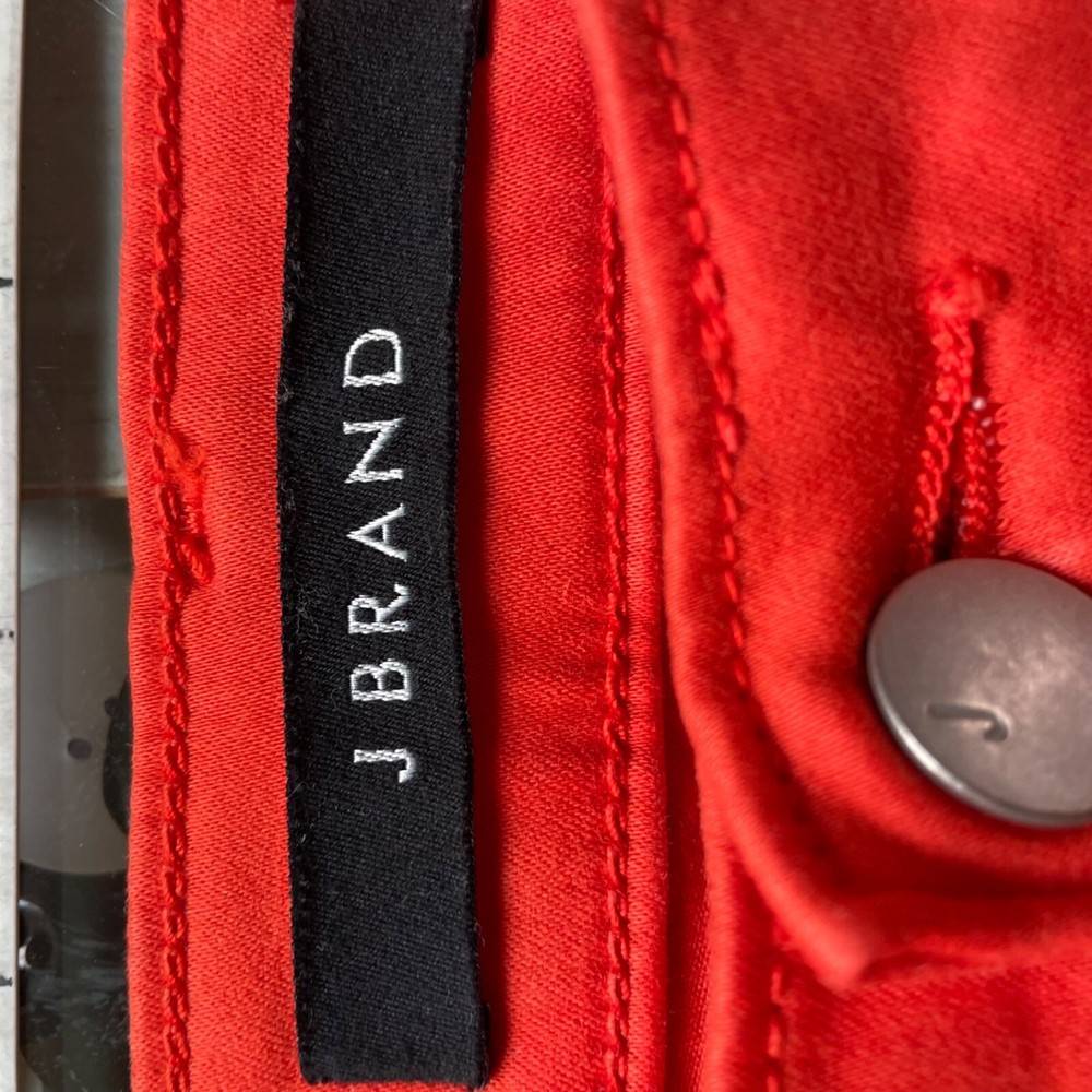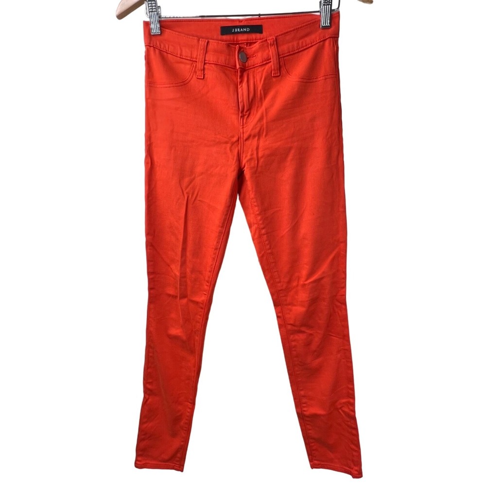 J Brand's Mid Rise Denim Skinny Leg Jeans in Cotton Blend is a stylish and comfortable addition to any wardrobe. These Burnt Orange jeans feature a mid-rise and skinny leg silhouette crafted from a cotton-blend construction. Perfect for any outfit, these jeans are sure to be a staple piece. • Fitted style • Mid-rise waist • Skinny leg • 5-pocket detailing • Cotton blend fabric • Burnt orange shade • By J Brand • Size 26
