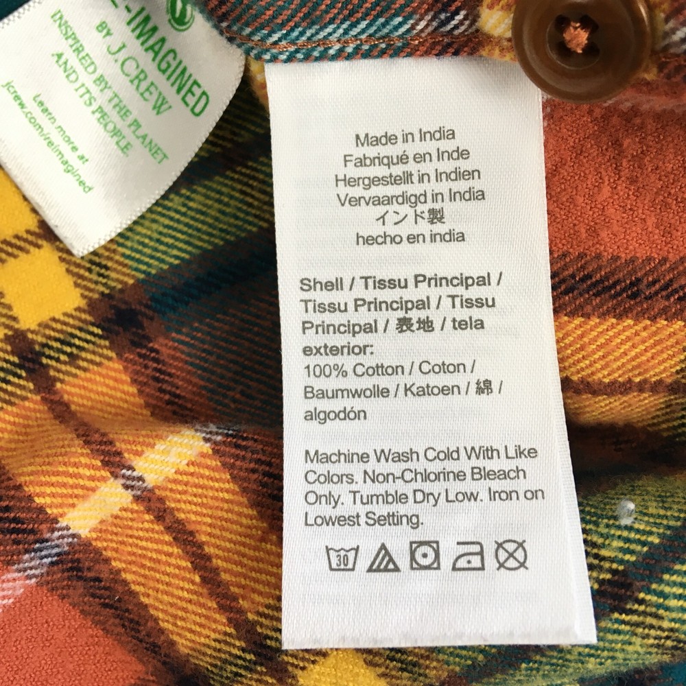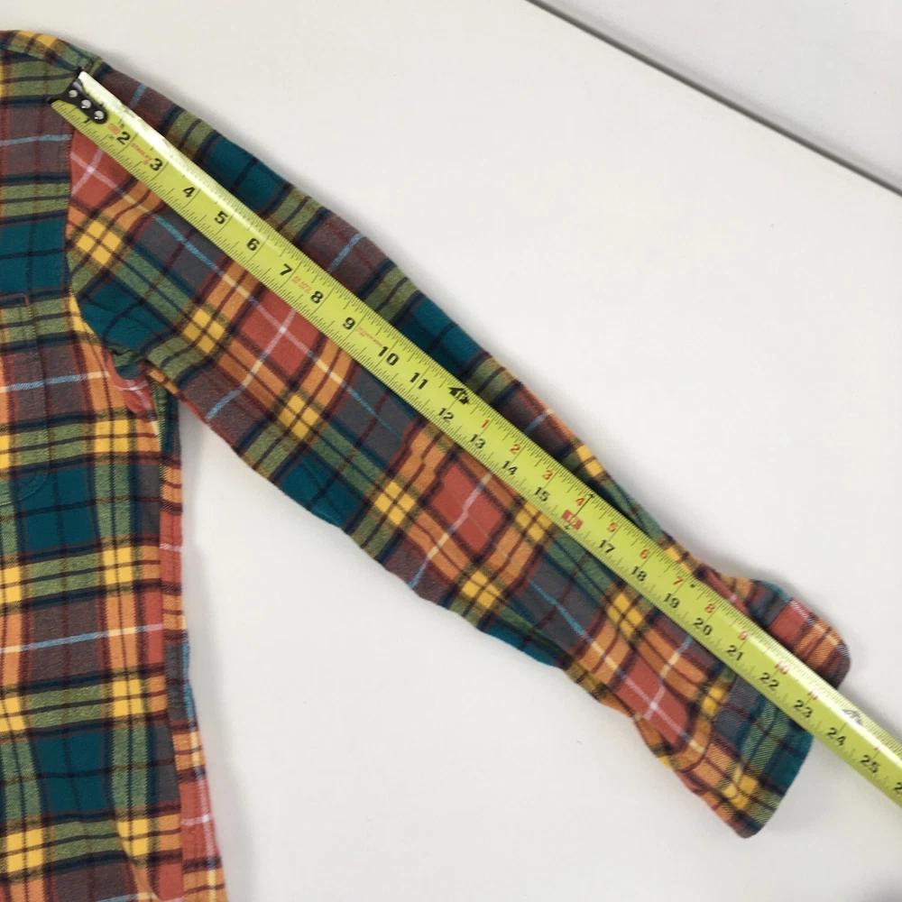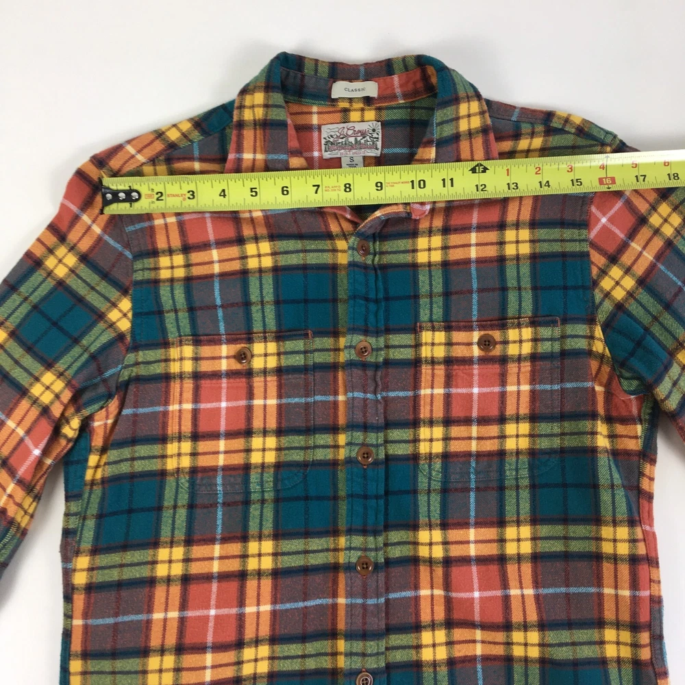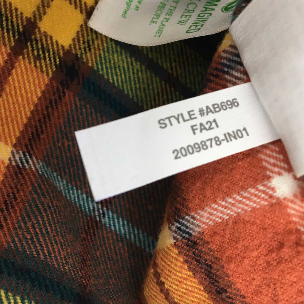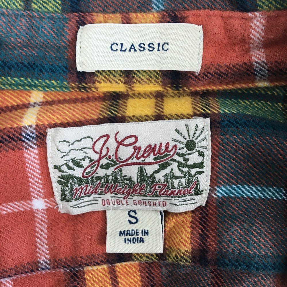 J CREW Mid Weight Flannel Shirt, Men's S, Plaid Double Brushed Western Orange. Good Pre-owned Condition. Ships fast!...