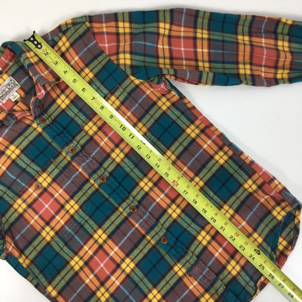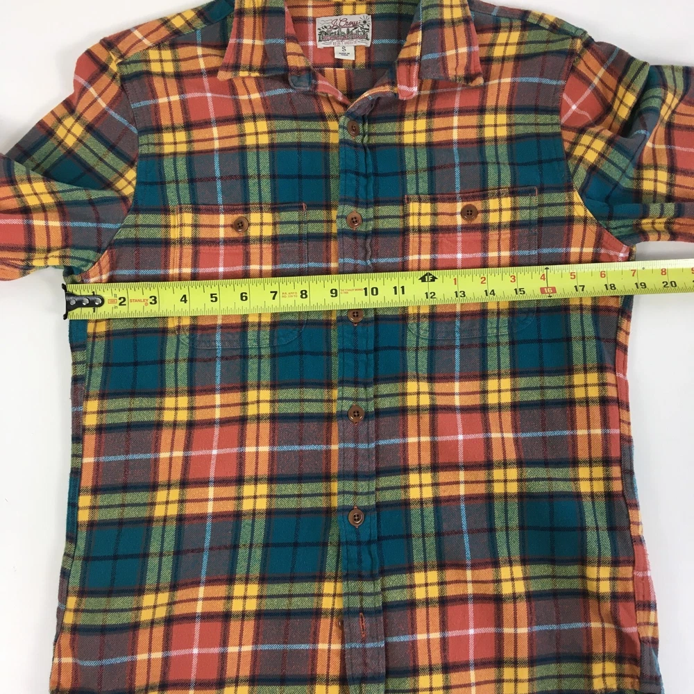 J CREW Mid Weight Flannel Shirt, Men's S, Plaid Double Brushed Western Orange. Good Pre-owned Condition. Ships fast!