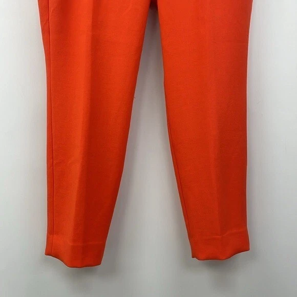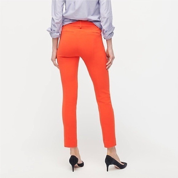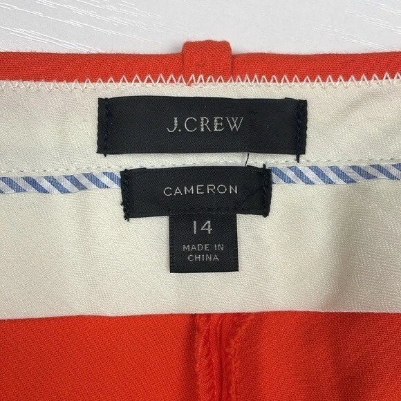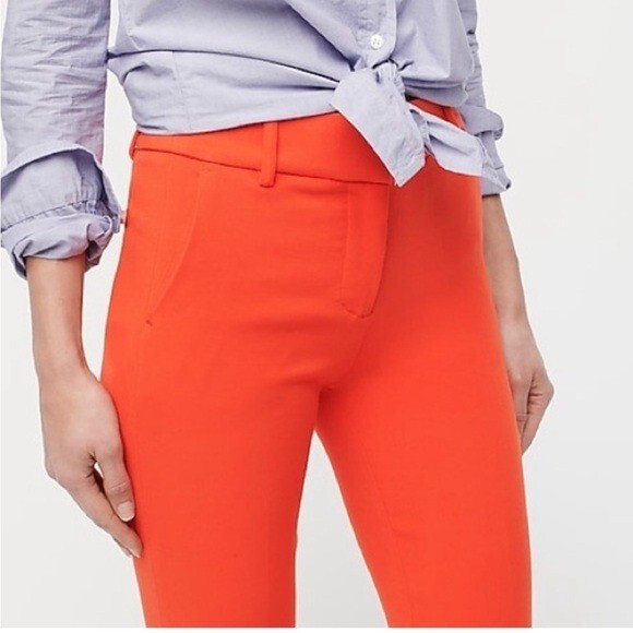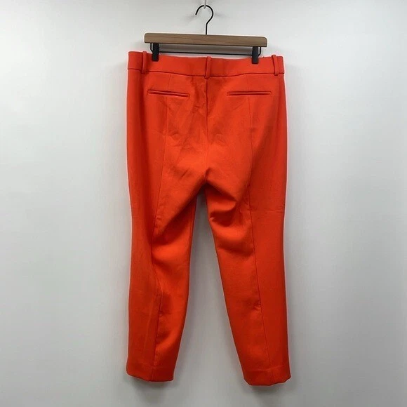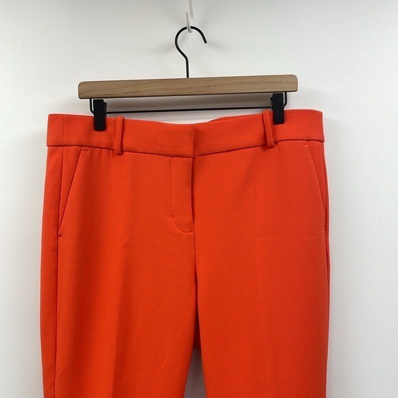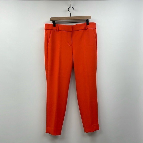 Excellent preowned condition! J. Crew Cameron Trousers Style #G8547 Size: 14 The ultimate 12 months a year, 7 days a week pant, in the customer-favorite easy to move in bi-stretch cotton. -Mid rise -Hook, loop and zipper fly -Belt loops -Ankle, straight leg -Two front slant pockets -Two back welt pockets -Solid bright orange crepe -64% polyester, 31% viscose, 5% elastane -Machine washable Approximate measurements laying flat... Waist: 17.5" Rise: 11.5" Inseam: 26.5" Stock photos used to show fit, actual photos taken in natural light All reasonable offers are considered :) Ships next business day!