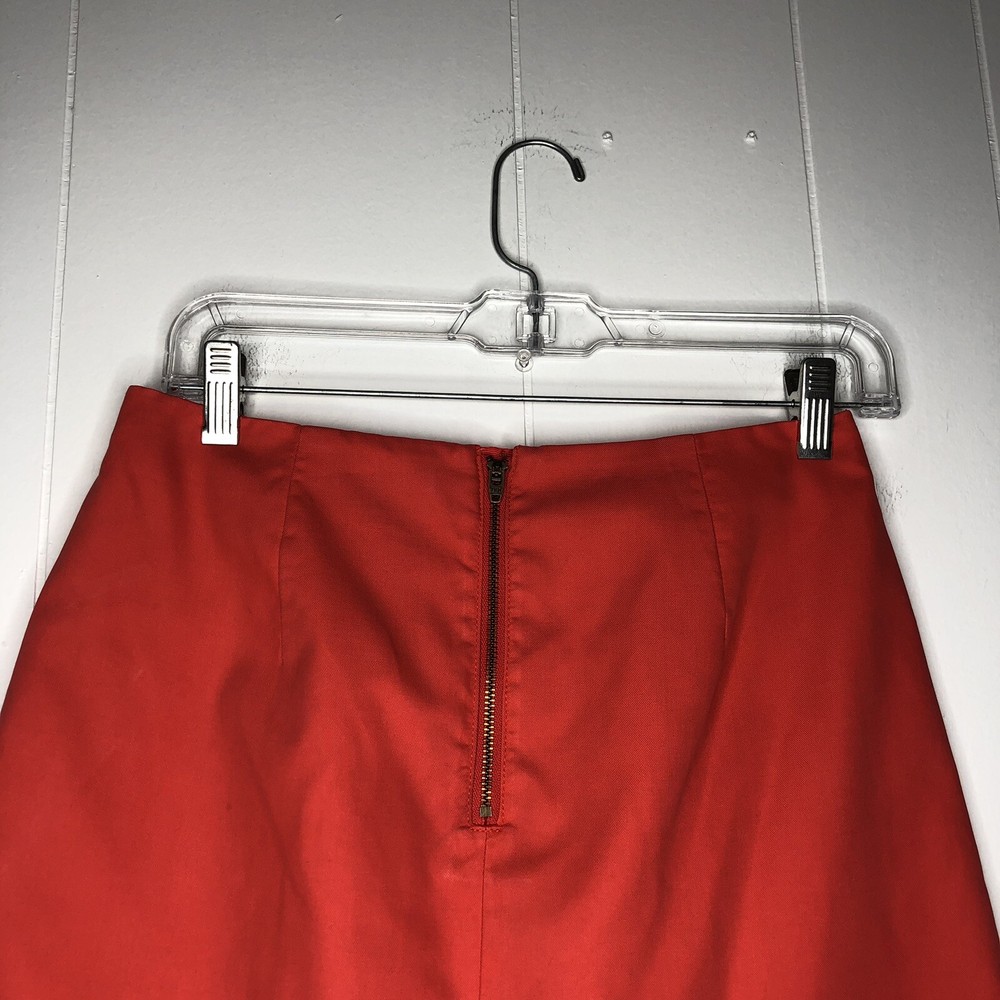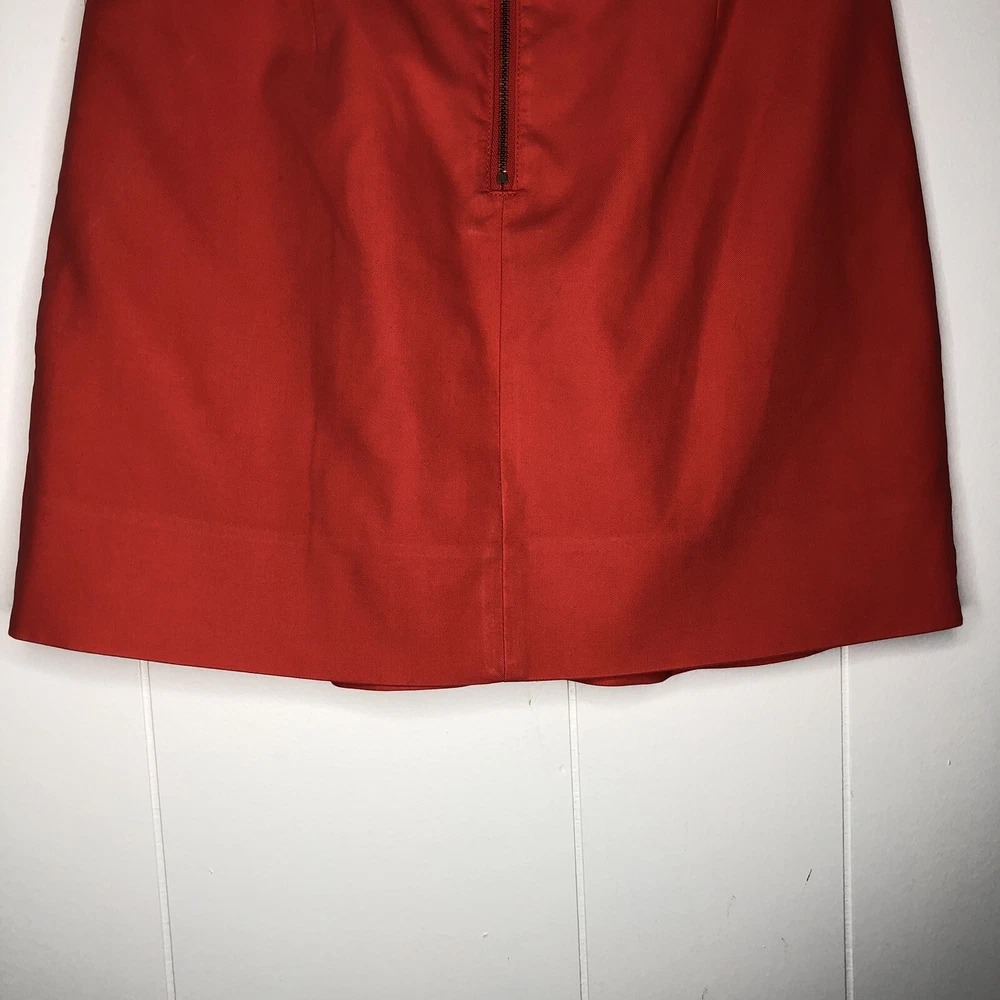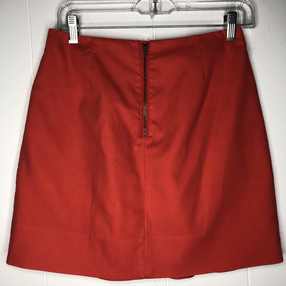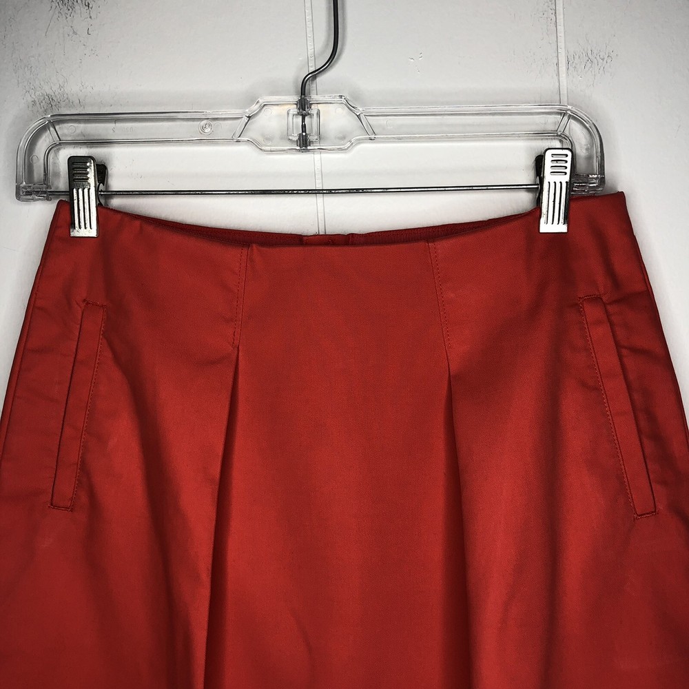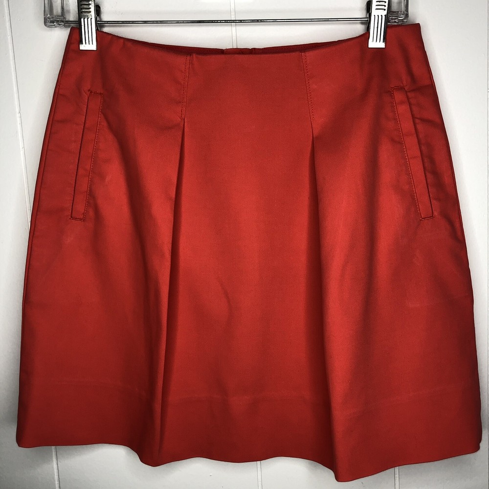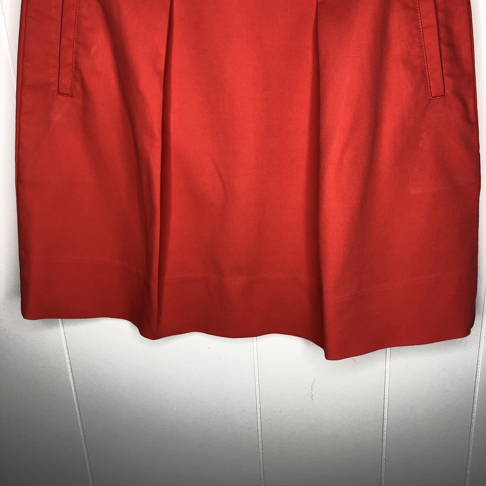 J. Crew Skirt Orange Two Front Knife Pleats Back Exposed Zipper 100% Cotton Size 0 Waist-28 in., 14 in. Laying Flat Length-16 1/2 in....