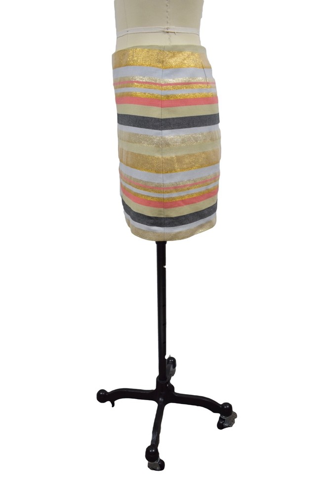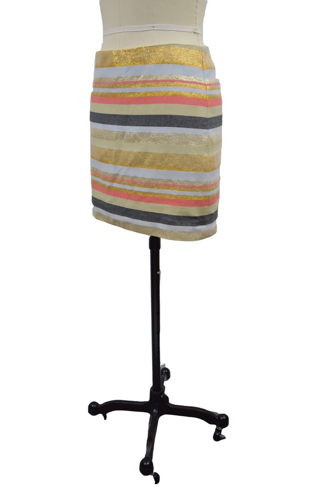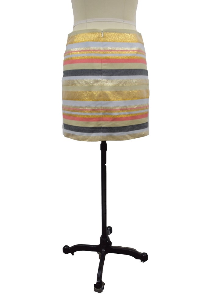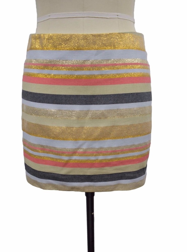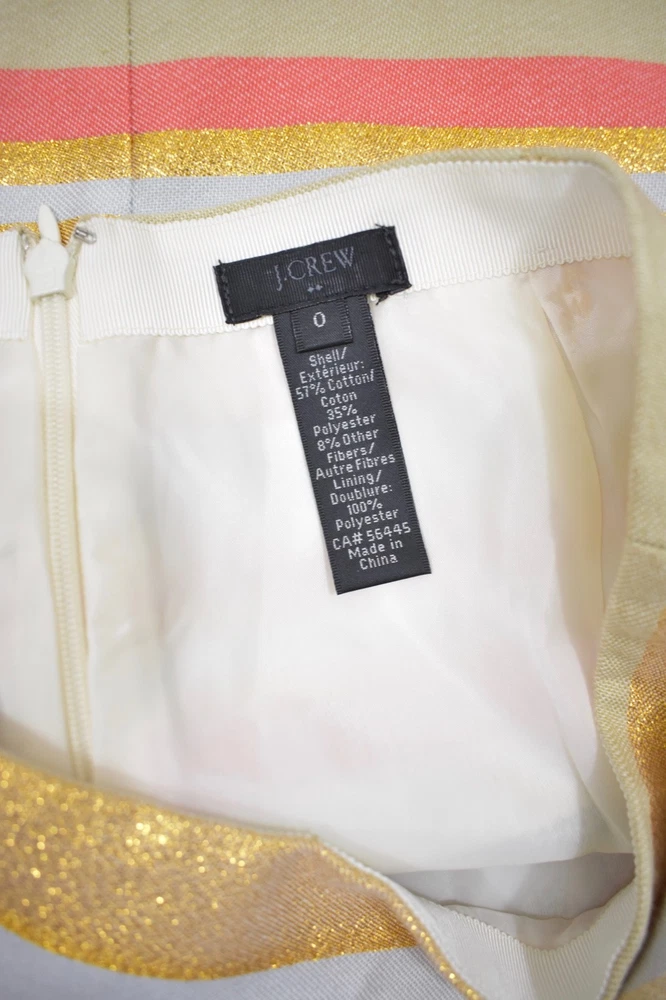 J. Crew Skirt Size 0 Description: 57% Cotton x 35% Polyester x 8% Other Metallic Accent Zips in Back Lined Measurements: Taken flat across skirt 14" Waist x 17" Hips x 16 " Length Thank you for visiting vogueintheoc! 101916 - 102116 - # 1836RL SB1 250 7 oz ed 032721 22 - M V TR PM RL 033021
