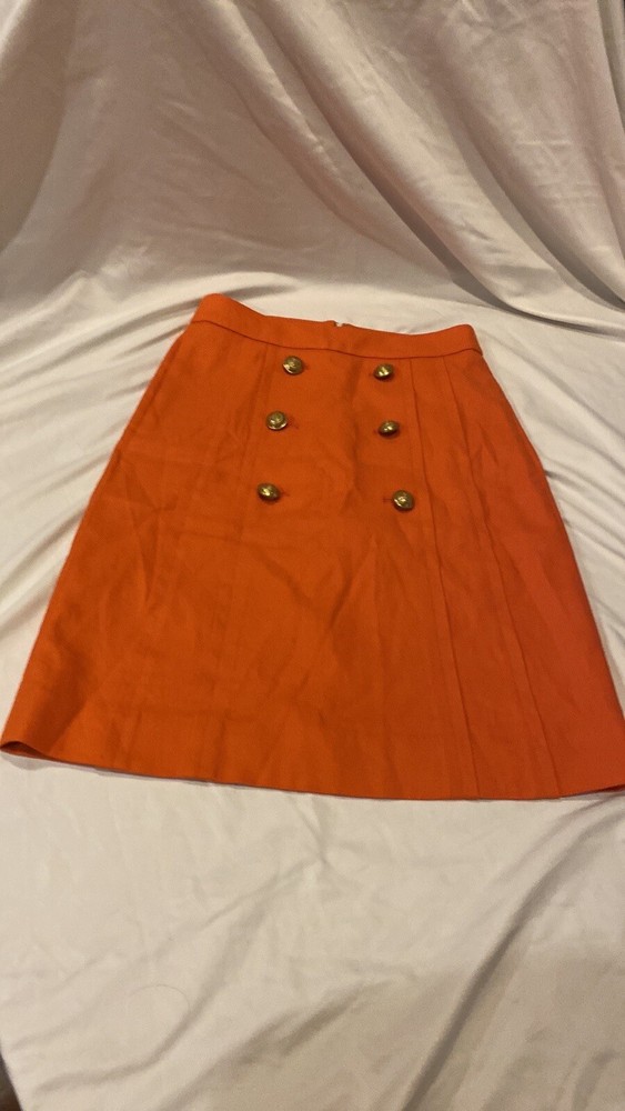 Gorgeous. Classy and high quality item! J.Crew skirt in orange with gold accent buttons. Condition is like new! Size 0, back zipper, front pockets, front gold buttons. Fully lined! Length is 21.75” lo...