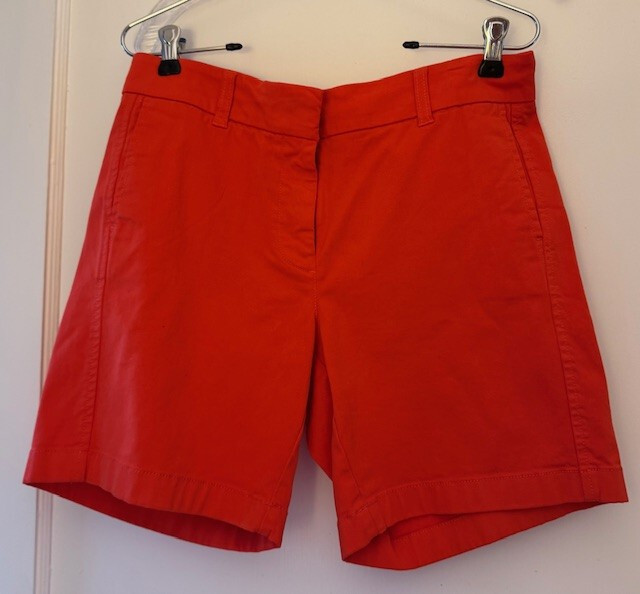 J Crew chino cotton shorts. Pre-owned but never worn, have been sitting in storage. The shorts fall just below the waist. THe fabric has a slight stretch to it, so although the shorts are close fitting the stretch in the fabric makes them very comfortable to move in. I have 3 colours for sale. If you are interested in more than one color, let me know and I can bundle them at a 10% discount. I wasn’t able to post the three together with volume pricing.