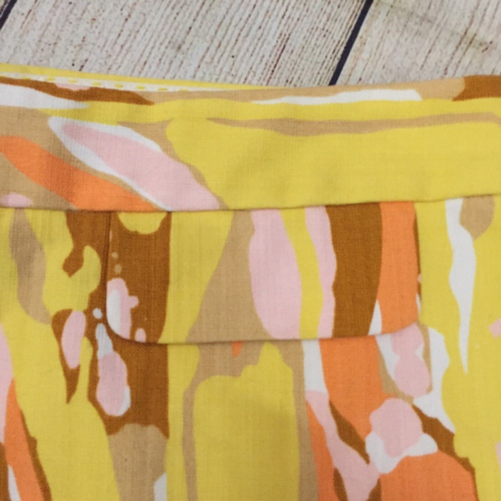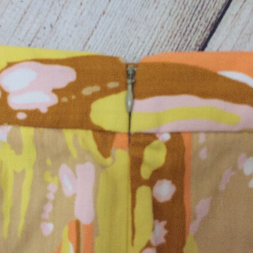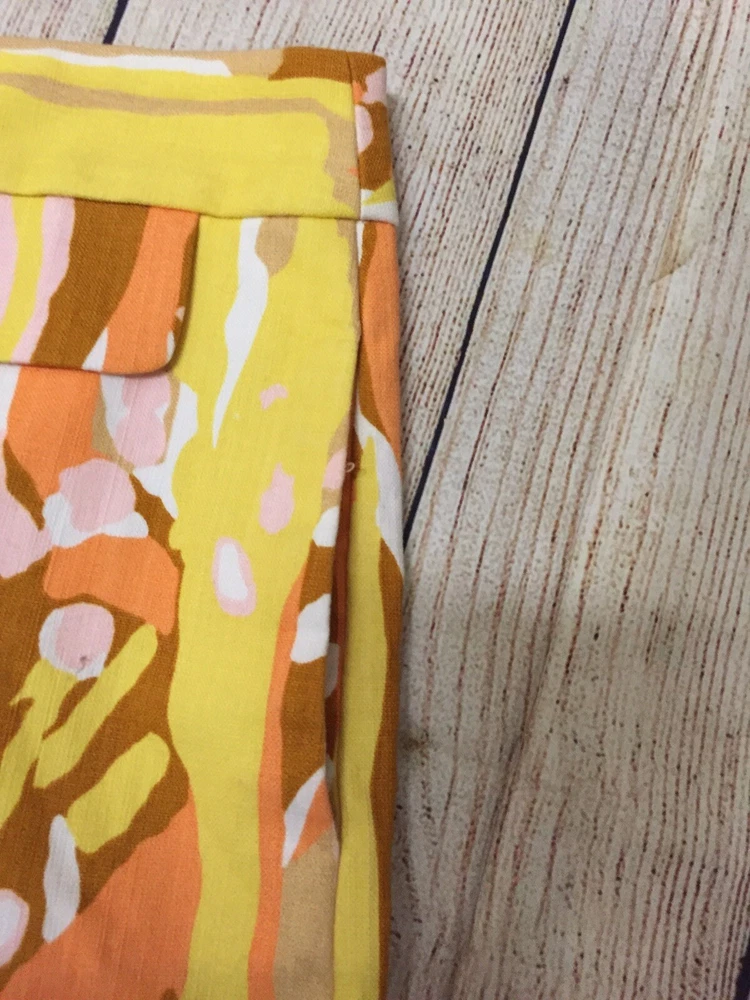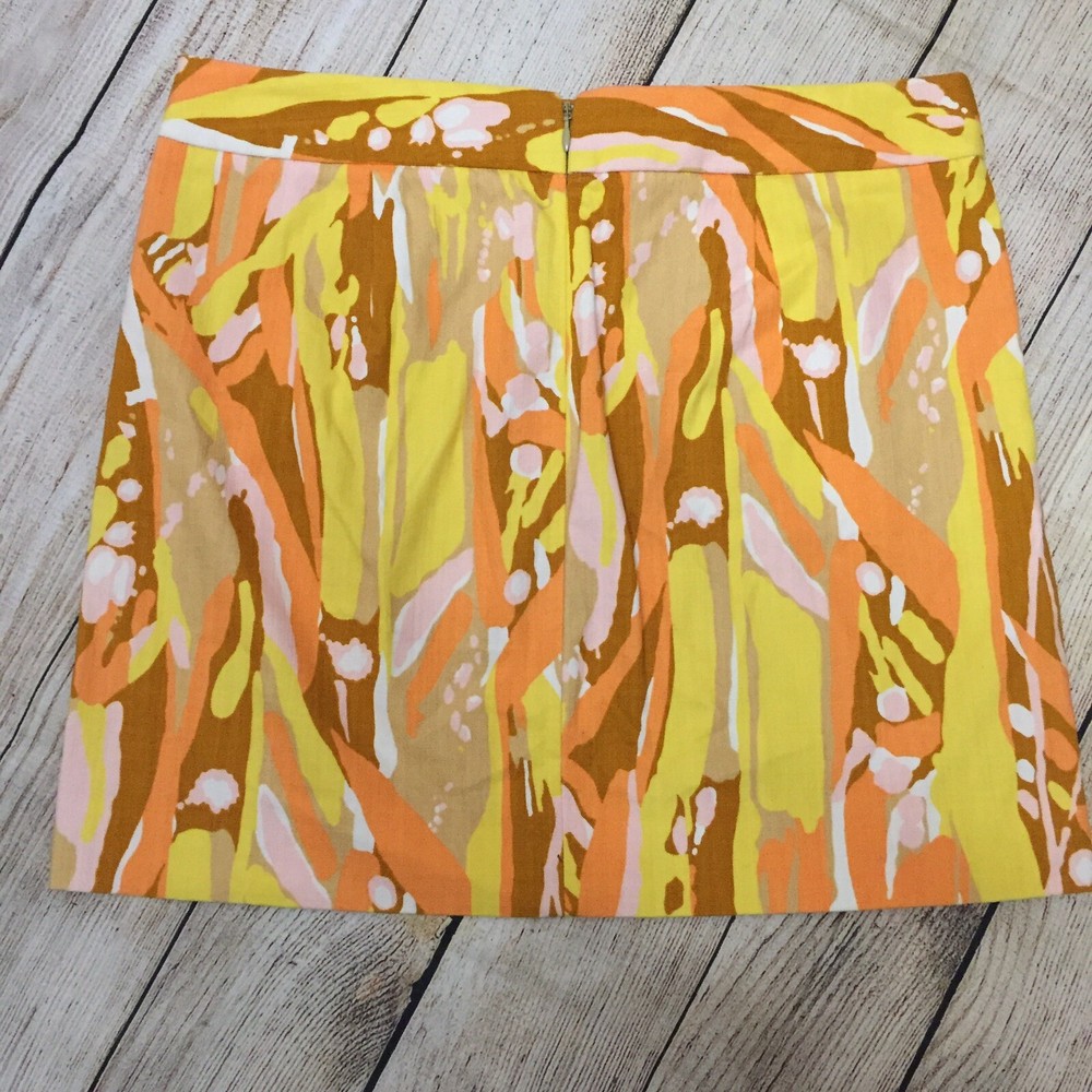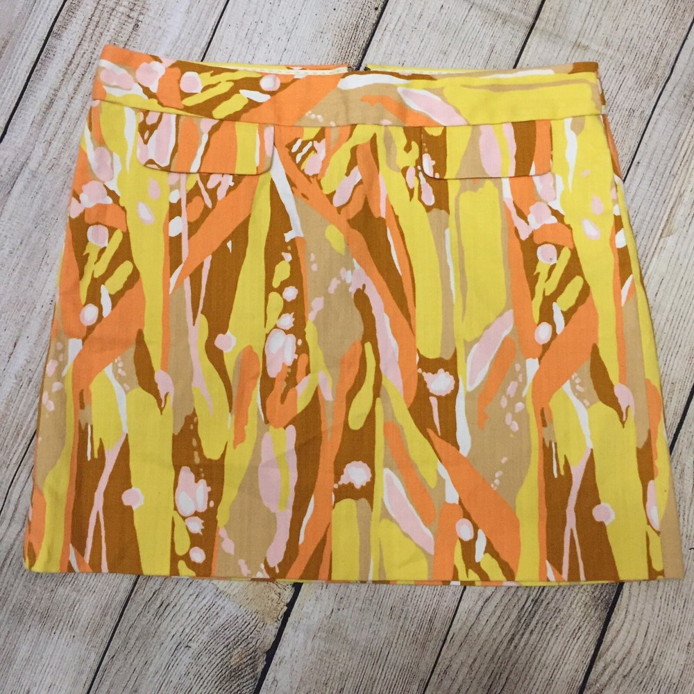 J. Crew Womens Sz. 4 Mini Skirt Yellow Orange Brown White Great Condition Zip Back 98% Cotton 2% Spandex Measurements; 30" Waist ~ 16" Length