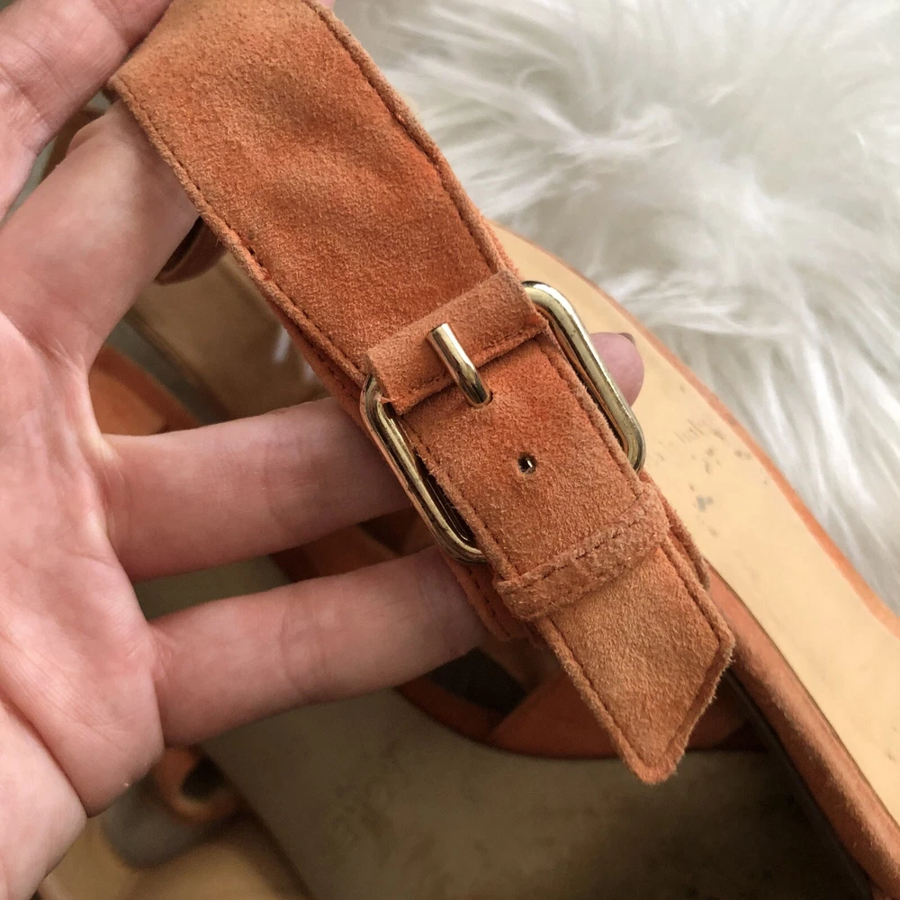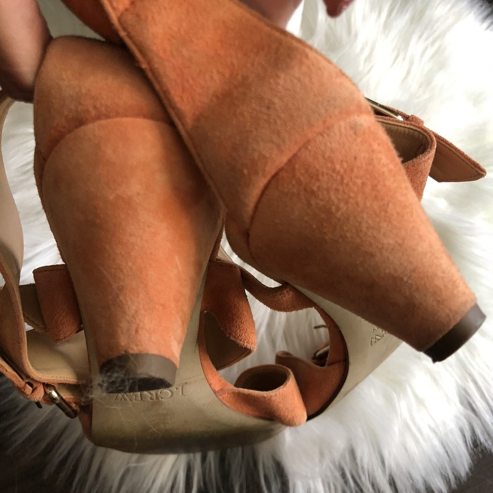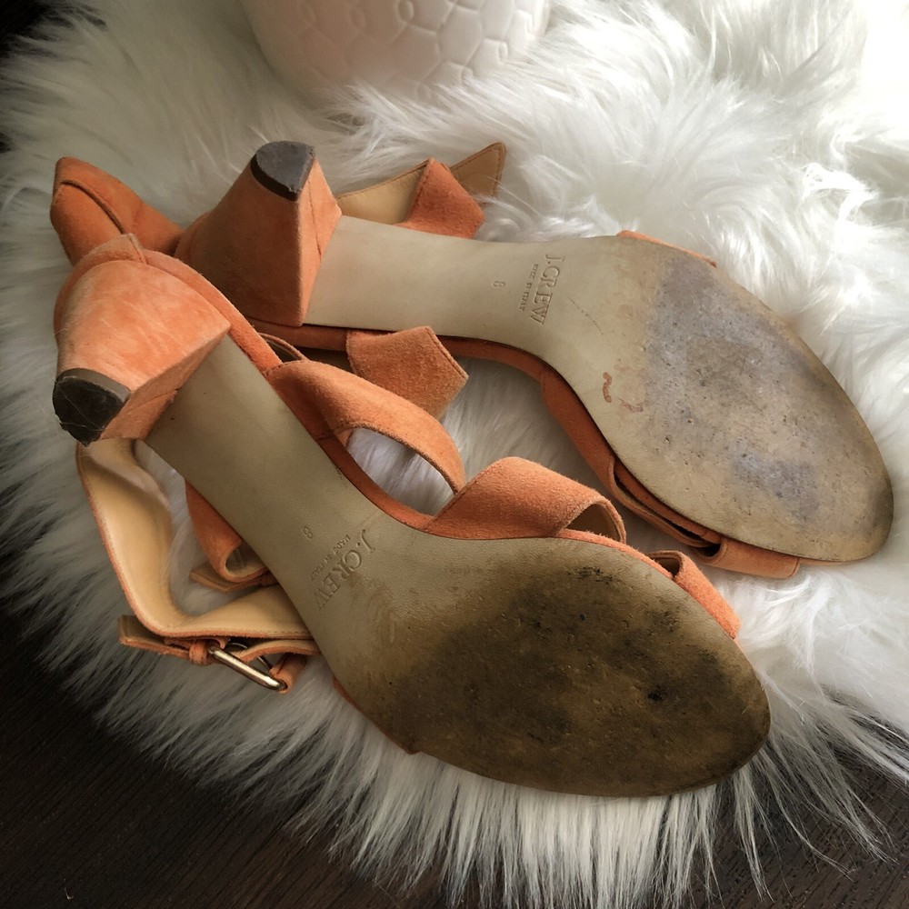 J Crew size 8 Orange Lucca suede strappy mid-heel sandals. Condition is Pre-owned. Shipped with USPS Priority Mail. Heel measures approximately 50mm/ 2 inches. Introduce a chic shot of color into your new-season wardrobe with J.Crew's raspberry suede sandals. The low heel makes this buckled pair a clever day-to-night choice - wear them with everything from cropped pants to a tailored dress for effortless 24-hour style. Please review photos for wear