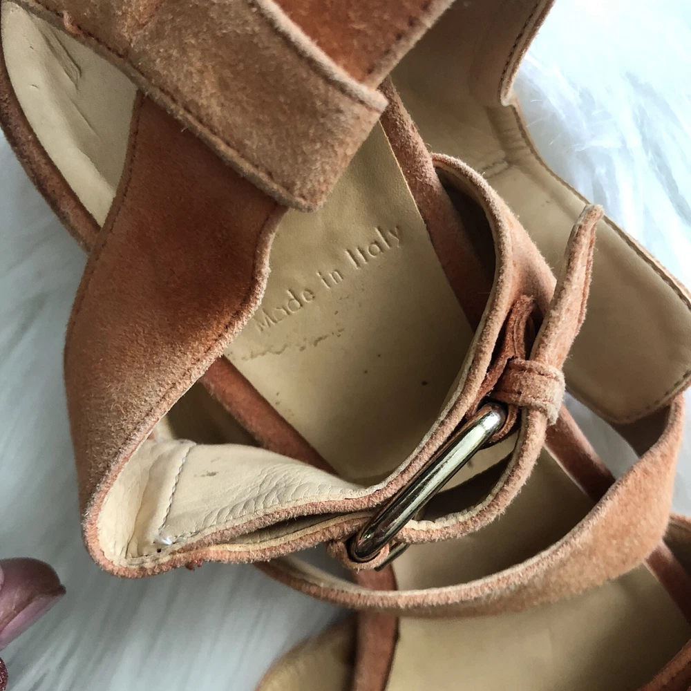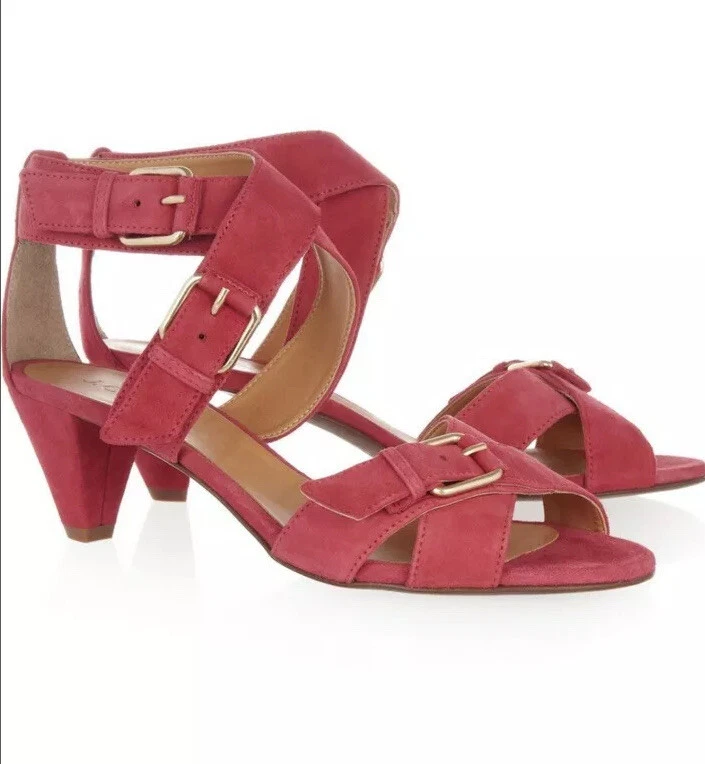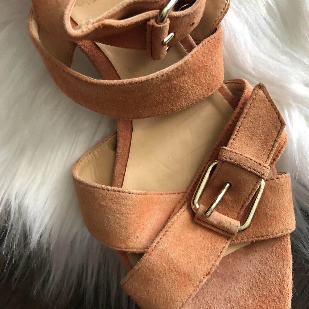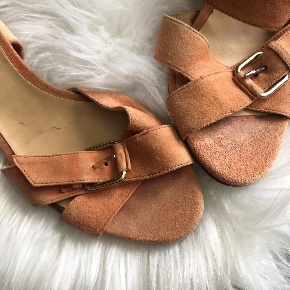 J Crew size 8 Orange Lucca suede strappy mid-heel sandals. Condition is Pre-owned. Shipped with USPS Priority Mail. Heel measures approximately 50mm/ 2 inches. Introduce a chic shot of color into your new-season wardrobe with J.Crew's raspberry suede sandals. The low heel makes this buckled pair a clever day-to-night choice - wear them with everything from cropped pants to a tailored dress for effortless 24-hour style. Please review photos for wear