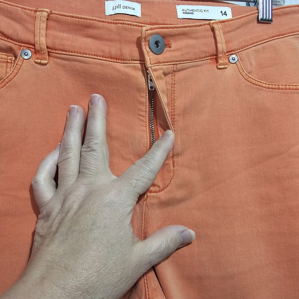 J. Jill Jeans Womens Size 14 Cropped Orange Mid Rise Cuffed Authentic Fit Denim. Excellent Condition- Pre-owned. Waist 18" side to side, rise 10", inseam 24". Offers welcome Inventory Tier 5