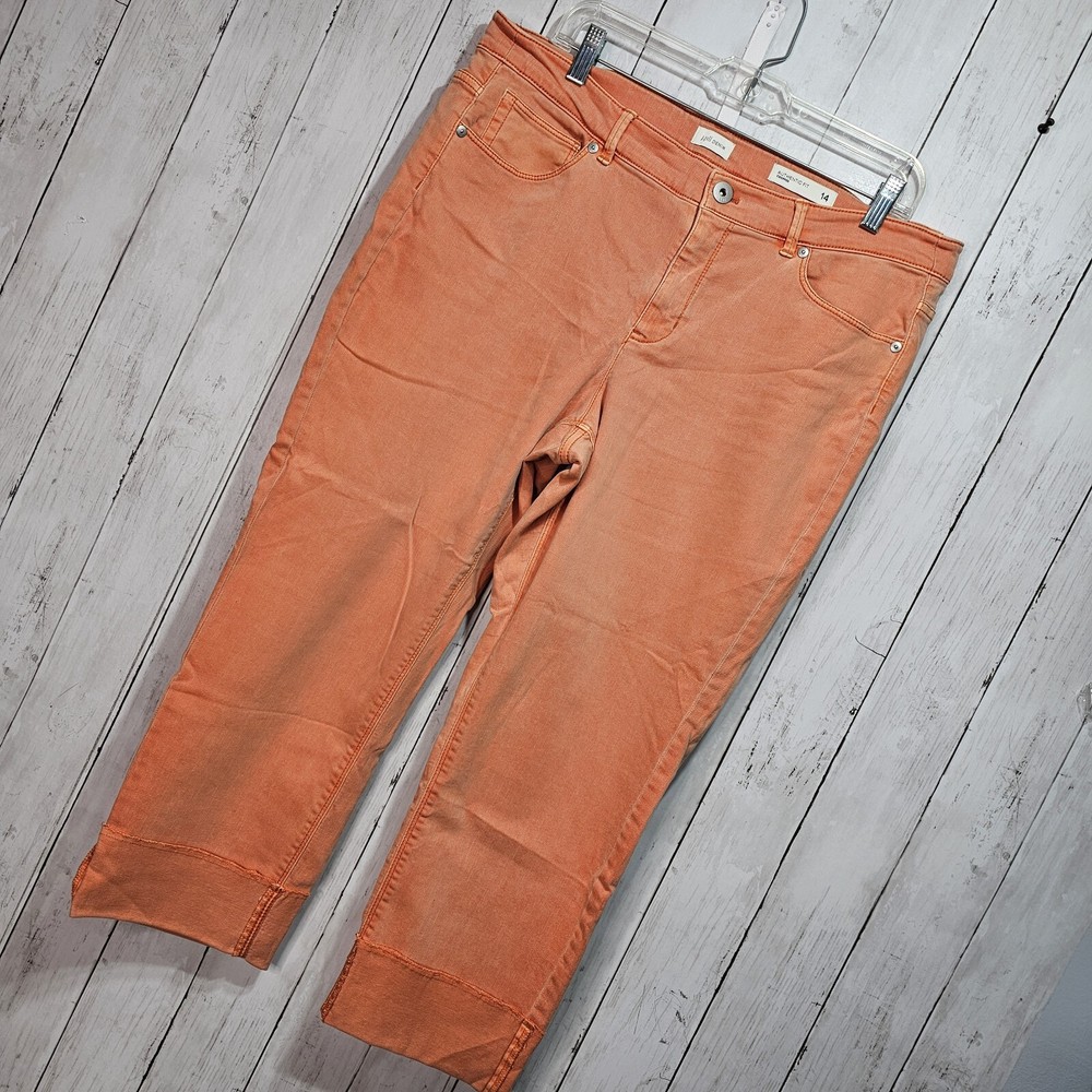 J. Jill Jeans Womens Size 14 Cropped Orange Mid Rise Cuffed Authentic Fit Denim. Excellent Condition- Pre-owned. Waist 18" side to side, rise 10", inseam 24". Offers welcome Inventory Tier 5...