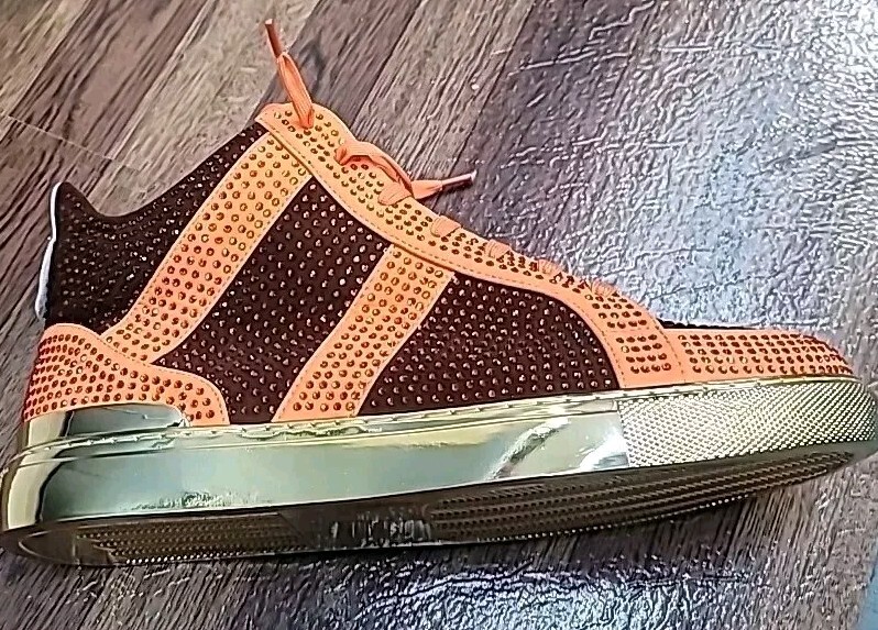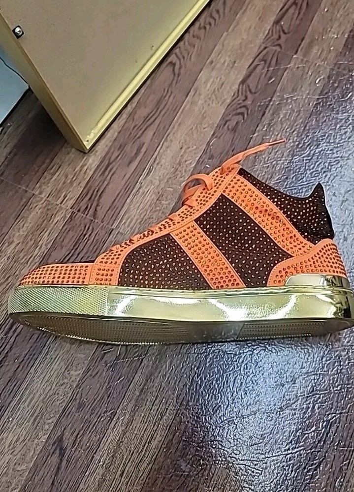 Jump Spezia-Mid J75 Men's Orange Brown Rhinestone Sneakers - Stylish & Trendy