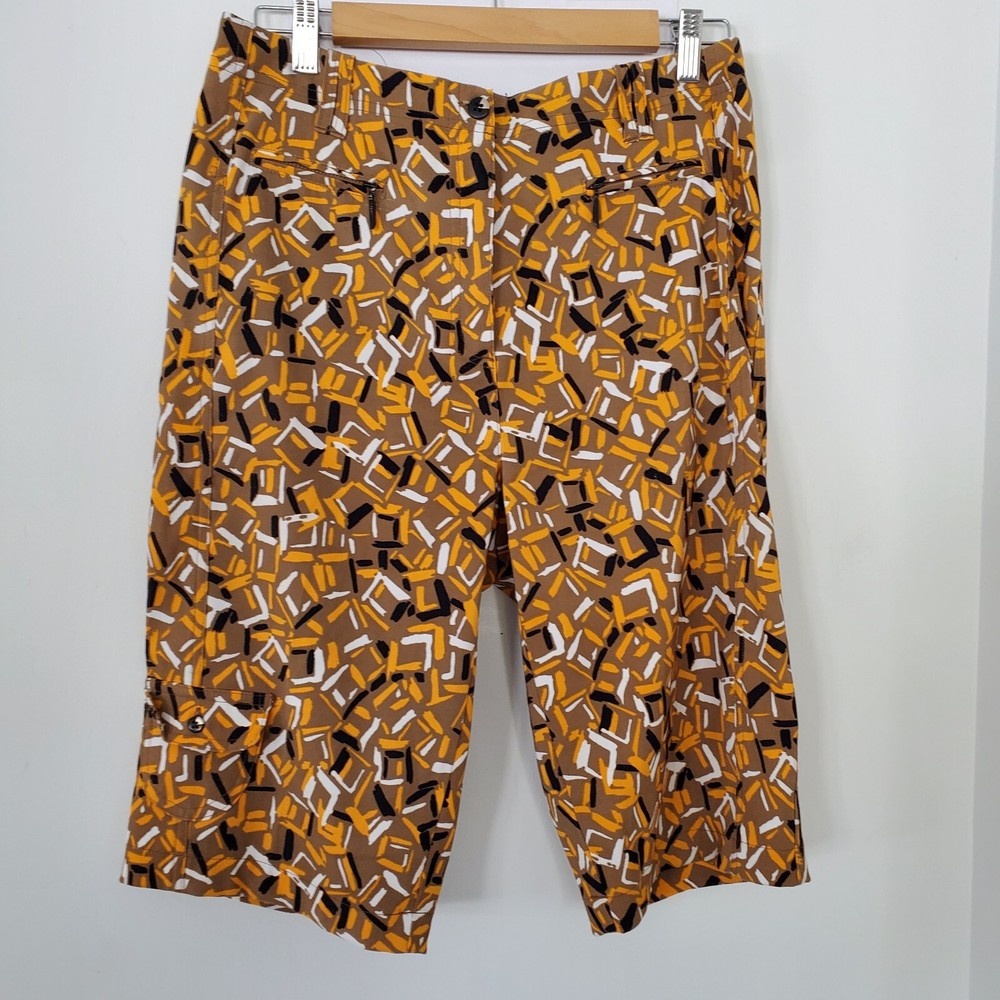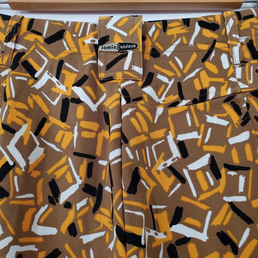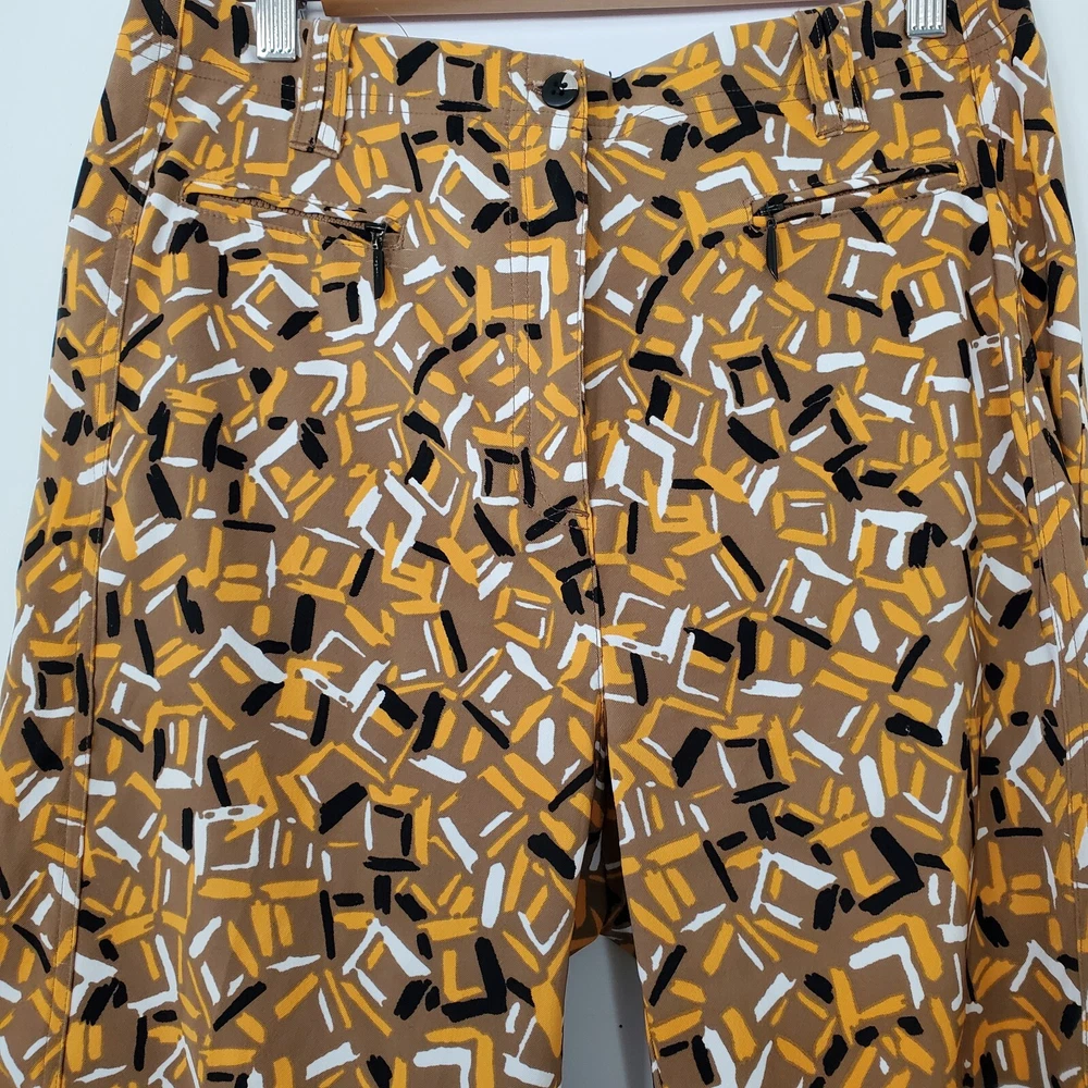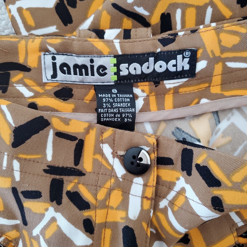 JAIME SADOCK *Women's Size 8 *Colors: Tan w/orange, white & black *80's Style GOLF Capri Knee Bermudas *Zip Fly w/Button *2 Front Zip Pockets *1 Back Zip Pocket *1 Small Cargo Button Pocket *Belt Loops *Metal Emblem Logo on Back *97% Cotton/3% Spandex *Machine Wash Approx Measurements *15" Waist Flat Across *11" Rise *13" Inseam *9" Leg Opening #Golf #Bermuda #ResortWear #80sStyle #Vacation #Colorful #Comfort #LightWeight EXCELLENT Pre-Owned Condition *No Flaws *No Stains *No Signs of Wear! *Smoke-free Home Fast Shipping!