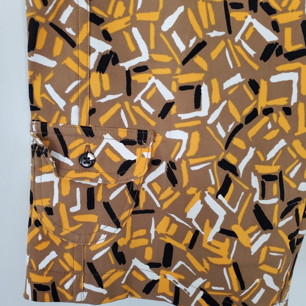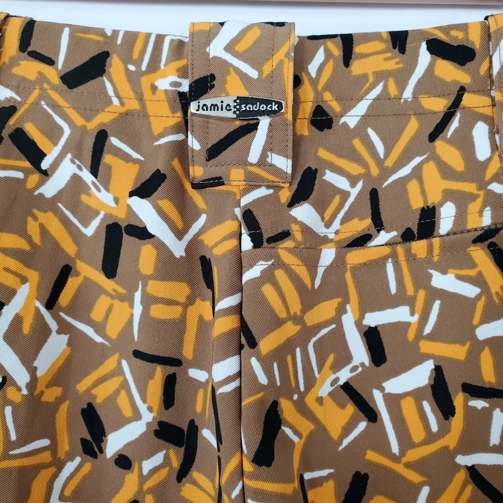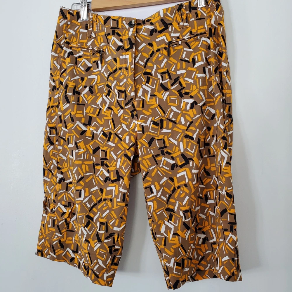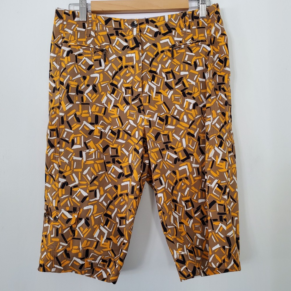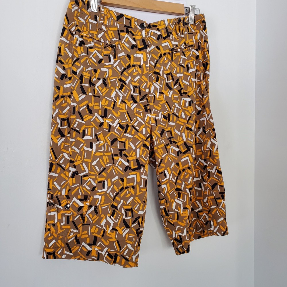 JAIME SADOCK *Women's Size 8 *Colors: Tan w/orange, white & black *80's Style GOLF Capri Knee Bermudas *Zip Fly w/Button *2 Front Zip Pockets *1 Back Zip Pocket *1 Small Cargo Button Pocket *Belt Loops *Metal Emblem Logo on Back *97% Cotton/3% Spandex *Machine Wash Approx Measurements *15" Waist Flat Across *11" Rise *13" Inseam *9" Leg Opening #Golf #Bermuda #ResortWear #80sStyle #Vacation #Colorful #Comfort #LightWeight EXCELLENT Pre-Owned Condition *No Flaws *No Stains *No Signs of Wear! *Smoke-free Home Fast Shipping!