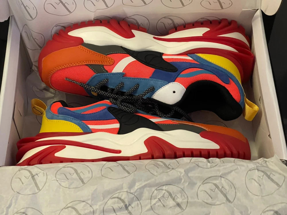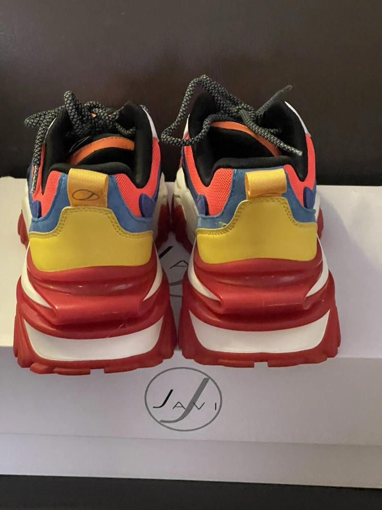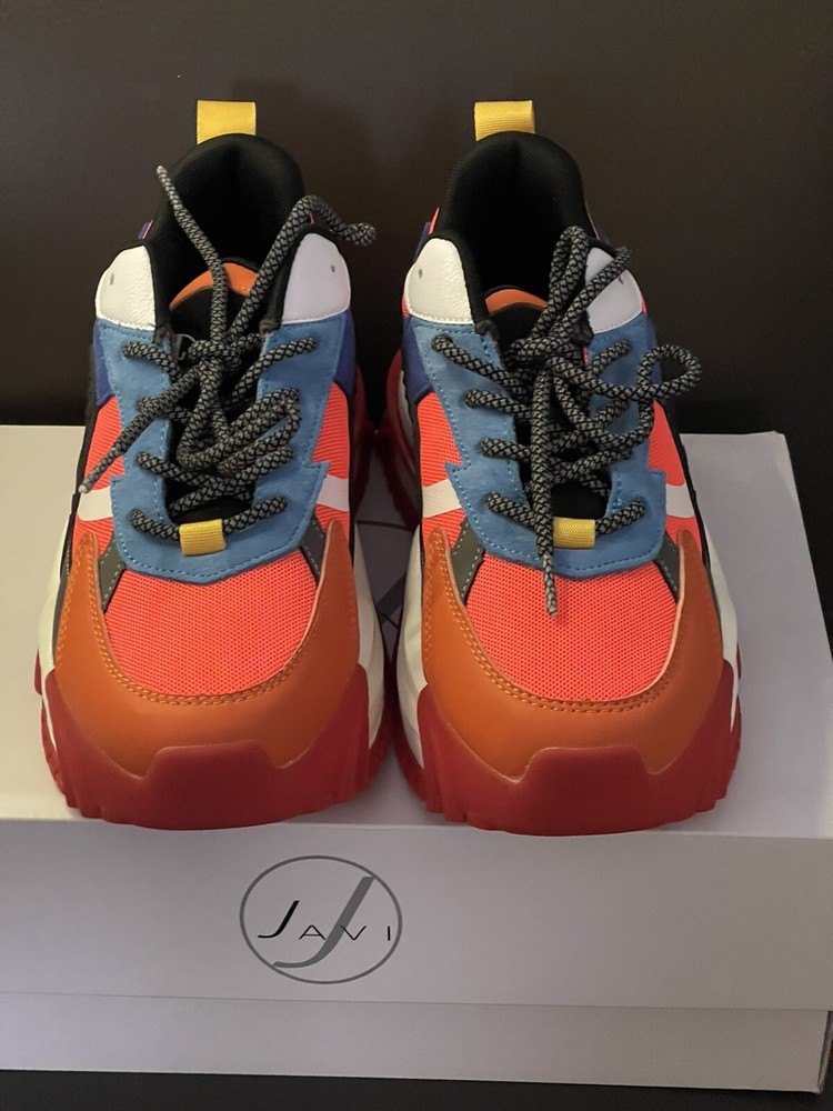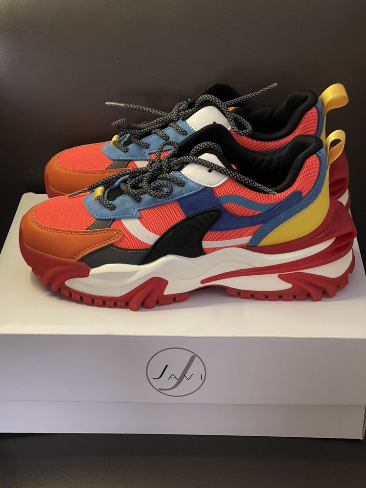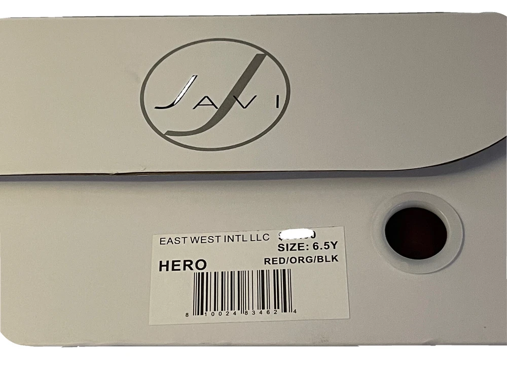 JAVI EAST WEST HERO RED/ORG/BLK SNEAKERS SHOES SIZE 6.5 Y NIB. Brand new in box DESCRIPTION Low-top casual silhouette Pull tabs on tongue and heel for easy on/off Mixed-material upper with reflective overlays and suede toe Trendy chunky midsoles Sturdy outsole for durability and traction.