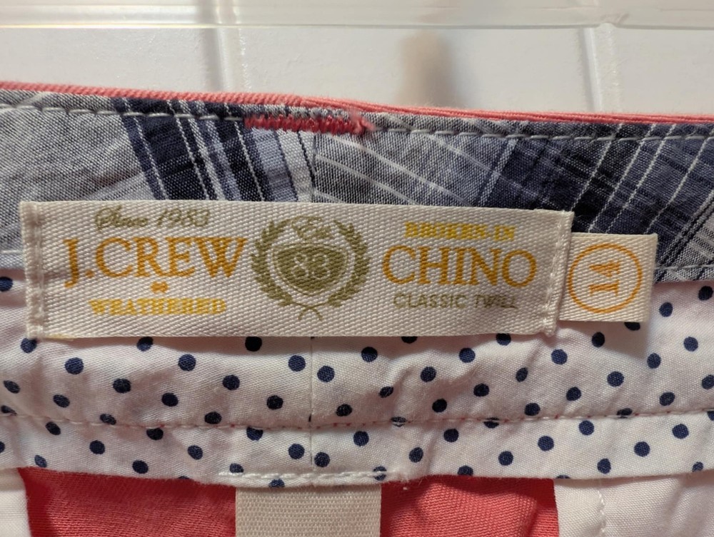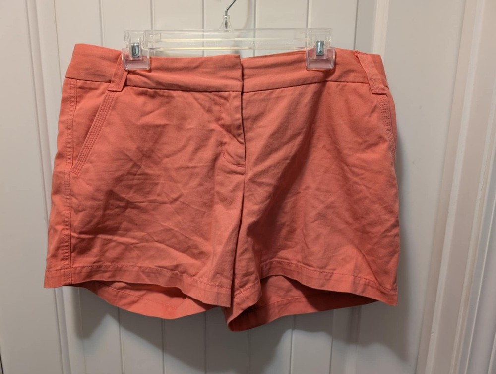 The J.Crew Broken-in Chino Orange/Coral Mid Rise Shorts in size 14 are perfect for a casual or travel outfit. Made from 100% cotton, these solid orange shorts feature a zip closure and flat front. With a mid-rise fit and regular size, these shorts offer comfort and style for the warmer seasons of summer, fall, and spring. Ideal for walking, beach trips, or school activities, these classic chino shorts are a versatile addition to any woman's wardrobe.