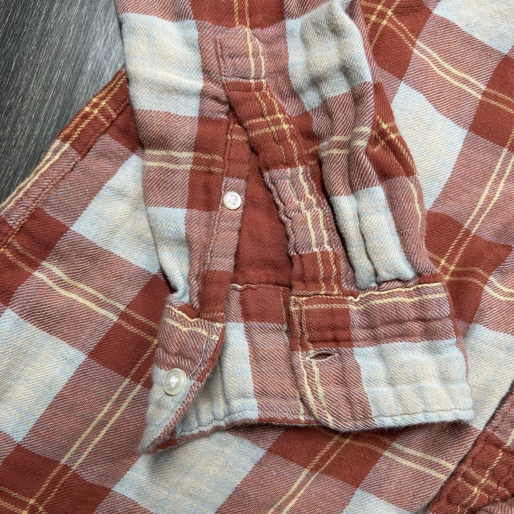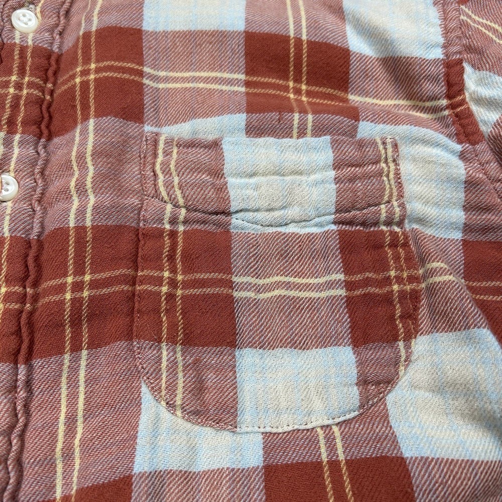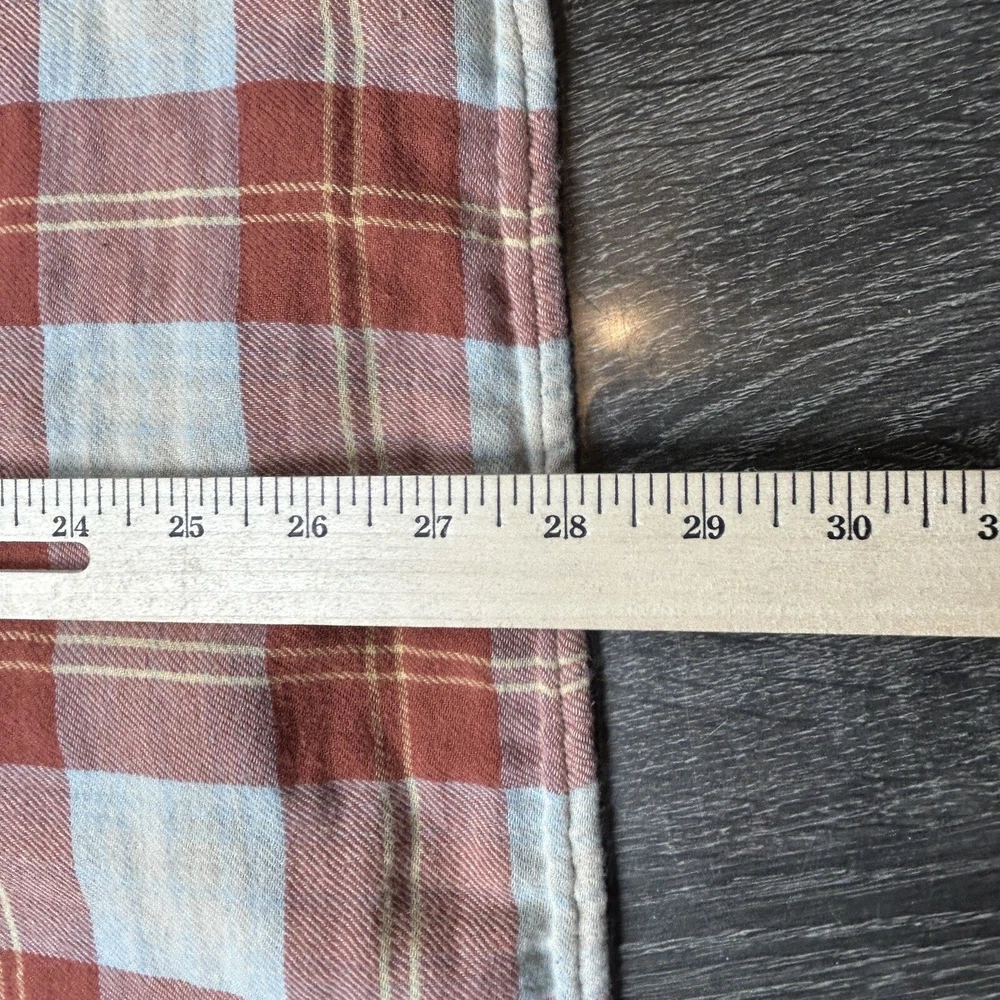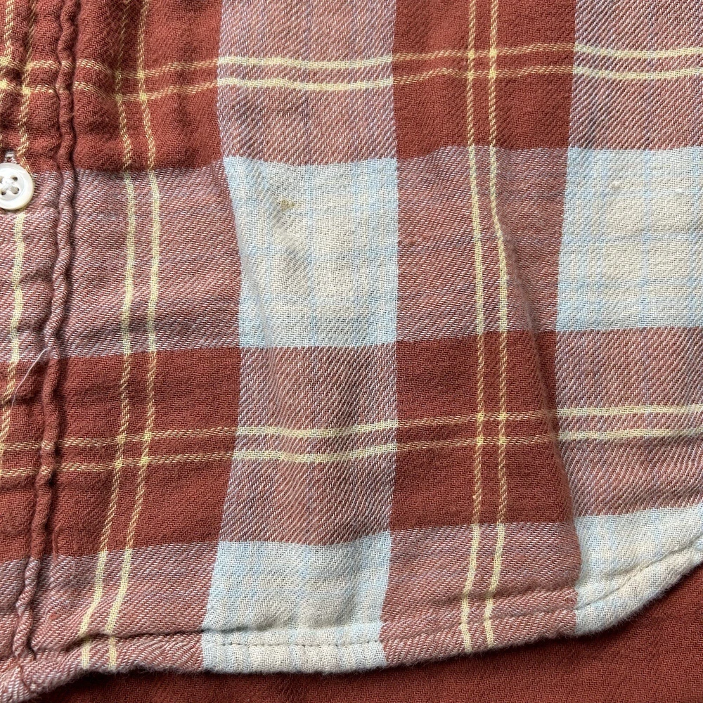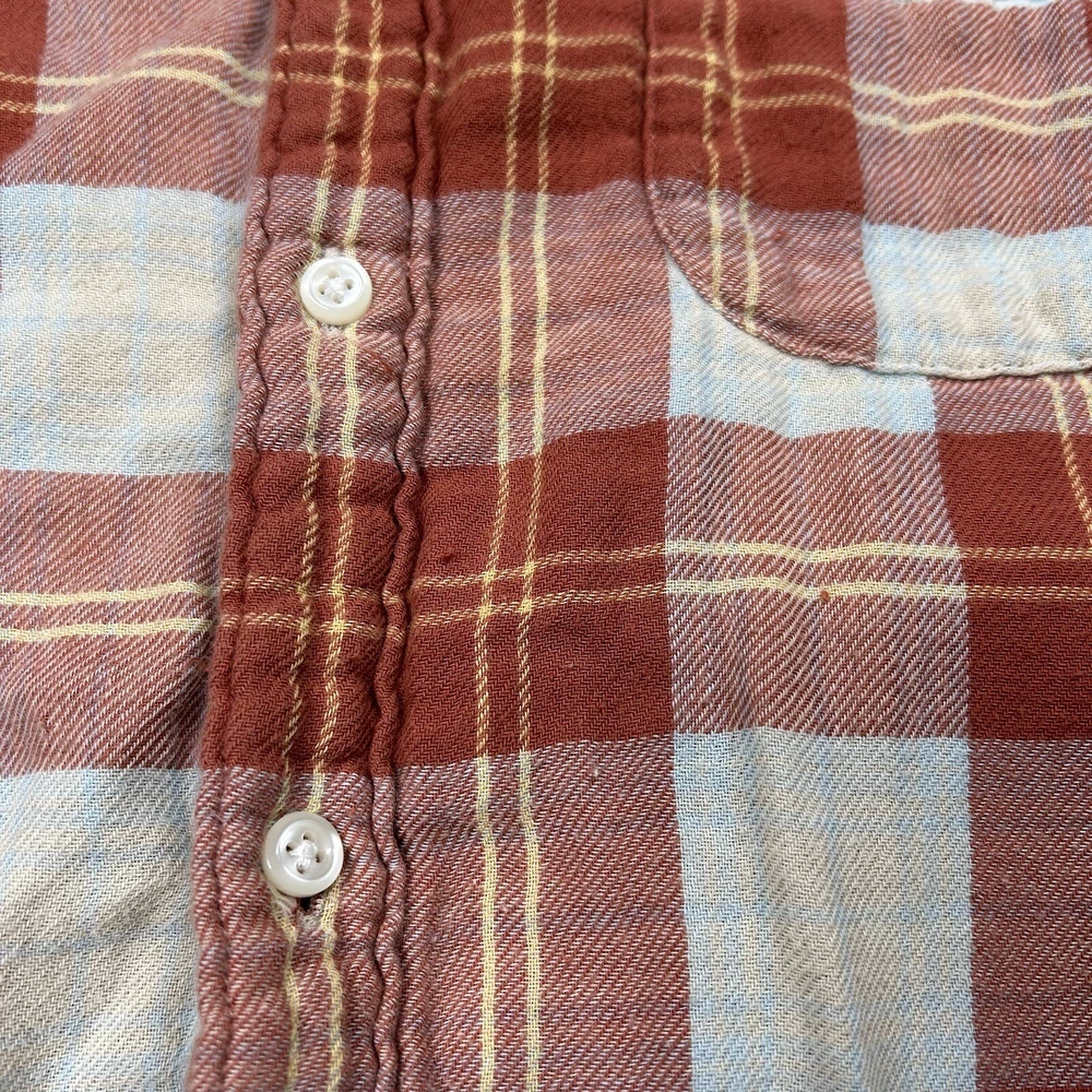 J.Crew Flannel Button SLIM Shirt Men's L Orange Plaid Mid Weight Outdoor *see photos of multiple small pulls on front of shirt and sleeve *see photos for measurements Pre-owned good condition Thanks f...
