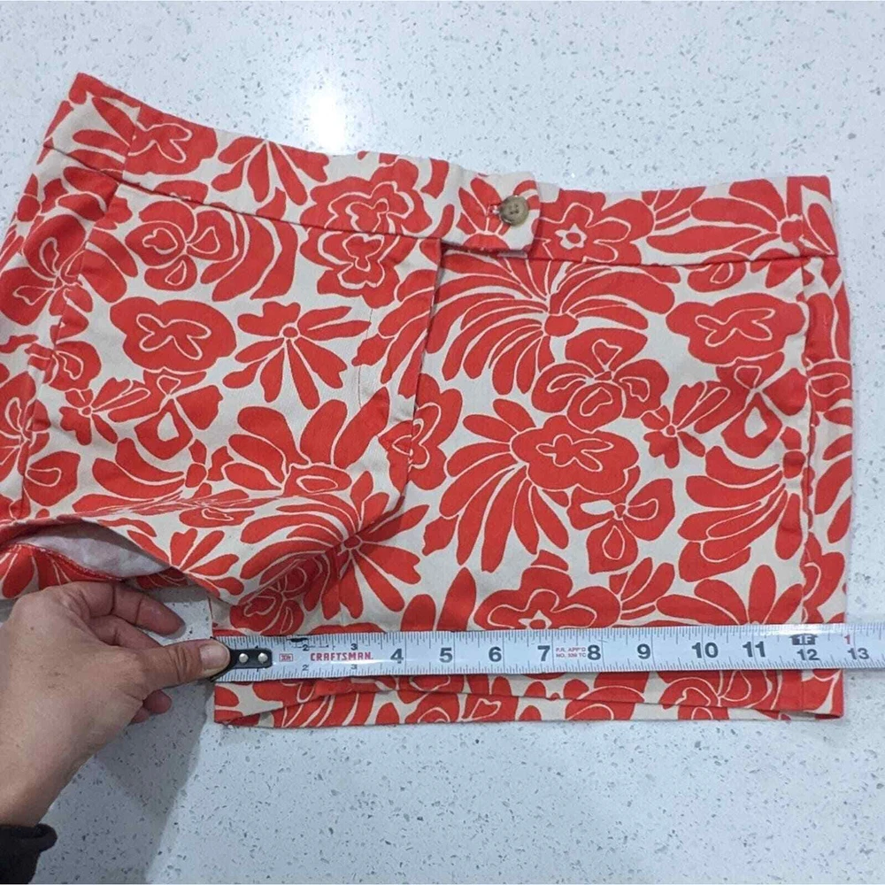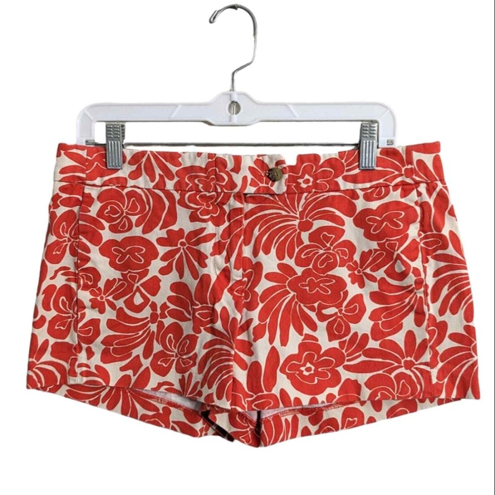 <![CDATA[<div>In great condition! J.Crew coral/orange floral print mini shorts, mid rise, with zipper fly and pockets. Perfect for the summer. Very comfortable. Size 6 For measurements, fabric and was...