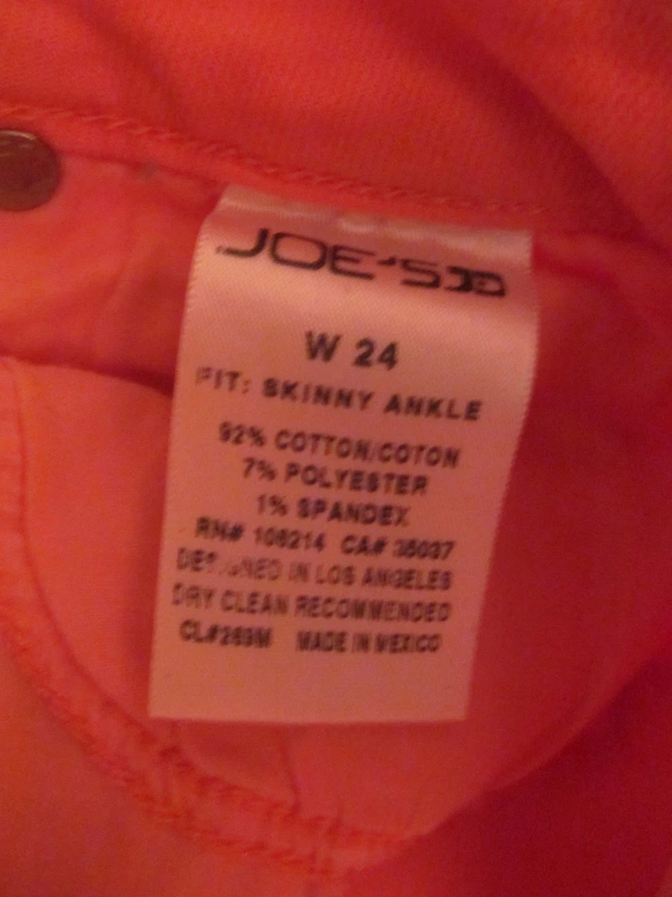 thia is a very nice pai r o f J OE'S JEANS SKINNY ANKLE in NECTAR, size 24, measurements laid flat / unstretche d , waist : 26", hips:15.5", thigh 9 1/4" across, hem : 5 " across, inseam: about 2 8 ",very stretchy, 5 pockets , the jeans are in excellent condition i do combine shipping and ship overseas, please take a look at my other items in the store, THANK YOU FOR SHOPPING AT MY STORE :)