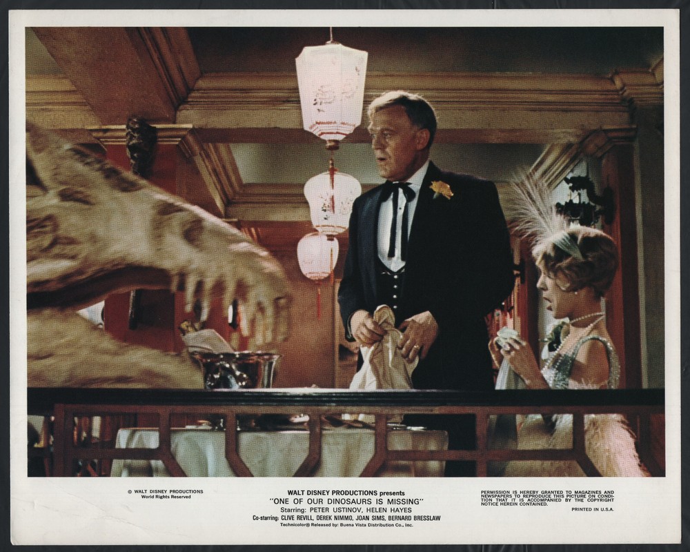 JOSS ACKLAND AMANDA BARRIE One Of Our Dinosaurs Is Missing ‘75 This vintage original still shows a VERY RARE photo of (from left to right) JOSS ACKLAND and AMANDA BARRIE. Photo/mini-lobbycard from the movie: One Of Our Dinosaurs Is Missing Year of the photo/mini-lobbycard: 1975 Size of the photo/mini-lobbycard: Approximately 8 x 10 Other members of the cast (not necessarily pictured): Helen Hayes Joan Sims Peter Ustinov Bernard Bresslaw Derek Nimmo Clive Revill Arthur Howard Joss Ackland Max Harris