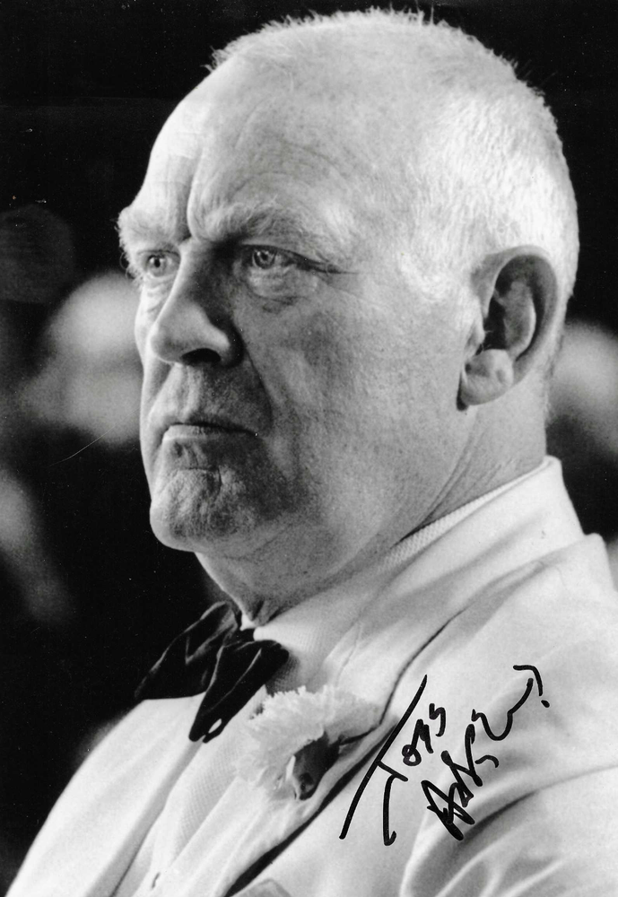 JOSS ACKLAND The Hunt For Red October/Z Cars/Evita hand signed A4 photo Sidney Edmond Jocelyn Ackland CBE (29 February 1928 – 19 November 2023) was an English actor who appeared in more than 130 film, radio and television roles. He was nominated for the BAFTA Award for Best Actor in a Supporting Role for portraying Jock Delves Broughton in White Mischief (1987). He worked opposite Alec Guinness in the 1979 television serial Tinker Tailor Soldier Spy , playing sporting journalist and intermittent British espionage operative Jerry Westerby , and his career advanced through the 1980s with important parts in such films as The Sicilian , Lethal Weapon 2 , The Hunt for Red October and White Mischief . On television Ackland appeared as Jephro Rucastle with Jeremy Brett and David Burke in The Adventures of Sherlock Holmes ; the episode entitled " The Copper Beeches ". Other appearances included Passion of Mind with Demi Moore and the two-part TV serial Hogfather based on Terry Pratchett 's Discworld . He played C. S. Lewis in the television version of Shadowlands before it was adapted into a stage play starring Nigel Hawthorne and then a theatrical film with Anthony Hopkins in the same role. His voice (as well as that of Roy Dotrice ) was heard reading quotations in several episodes of Jacob Bronowski 's 1973 documentary series The Ascent of Man . Ackland's stage roles included creating the role of Juan Perón in Tim Rice and Andrew Lloyd Webber 's musical Evita opposite Elaine Paige . He also starred in the London production of Stephen Sondheim 's and Hugh Wheeler 's A Little Night Music with Jean Simmons and Hermione Gingold , performing on the RCA Victor original London cast album. [