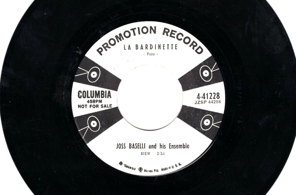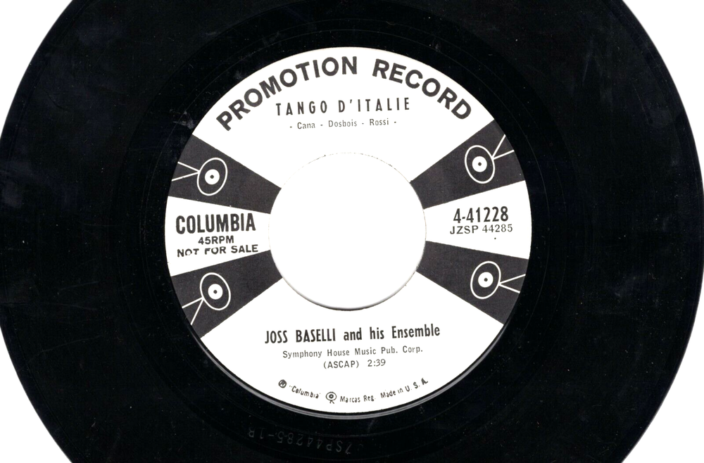 The Original Hits .. 45 R.P.M. Records .. Ships USPS: .. Delivery ConfIrmation, For Combined Shipping Use The Cart .. ALL RECORDS HAVE BEEN STORED IN SLEEVES, AS SHOWN, AND IN CONDITION AS LISTED... Professional Packing, We Ship In New Boxes Marked .. FRAGILE.. With Cardboard Packing.. Records Guaranteed to be as listed...And Offered At Low Saving Prices. See Photo Of Label For any Tags Or Writing On Label.. " STANDARD GRADE CODES.." M .. NEW .. M- .. CLOSE TO MINT.. VG+ .. CLEAN RECORD IN GREAT CONDITION .. VG .. RECORD SHOWS SOME WARE.. VG- .. RECORD HAS SOME SCRATCHES PLAYS OK.. G .. POOR CONDITION WILL PLAY.. All 45's are long out of print, and becoming more scarce every year. The records gain value, and now is the time to add to your collection ... Thank you for your interest in the oldies listings.. 100% Guarantee On All Records... Dive into the rich rhythms of Argentina with Joss Baselli and His Ensemble's "Tango D'Talie," a DJ copy single that brings the passion of tango straight to your turntable. With its 7" record size and spinning at 45 RPM, this piece is a perfect addition to any Latin music collection. Released in the 1950s under Columbia Records, this high-fidelity recording captures the essence of the era's style and allure. The record is graded as Near Mint, indicating its well-preserved state that sounds as crisp as it did in the heydays of vinyl. Catalog Number 4-41228 marks its authenticity, and being a first pressing promo, it's a gem for both collectors and music enthusiasts alike. Embrace the nostalgia with this classic piece of music history, a testament to the golden age of tango.