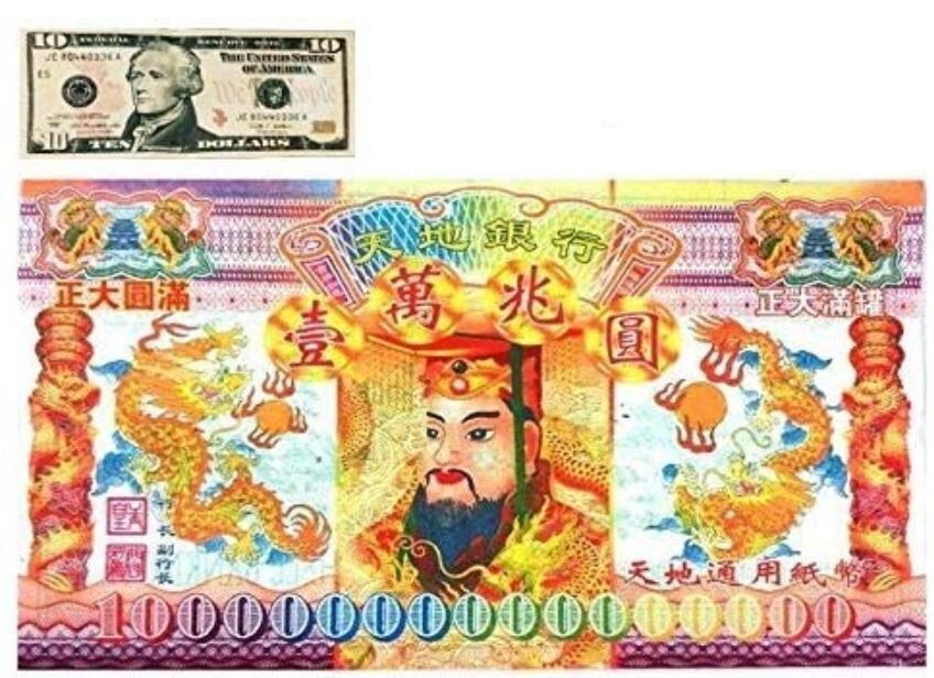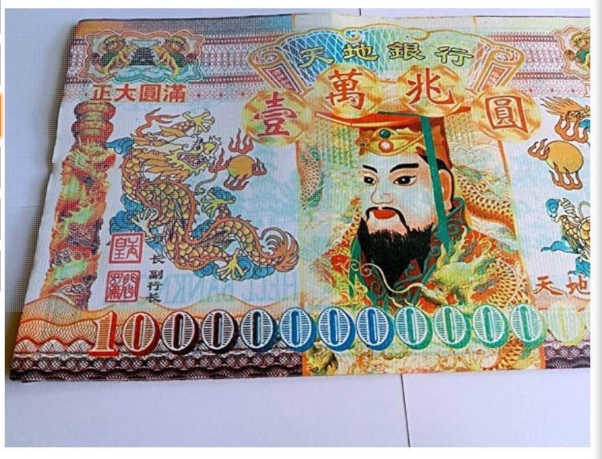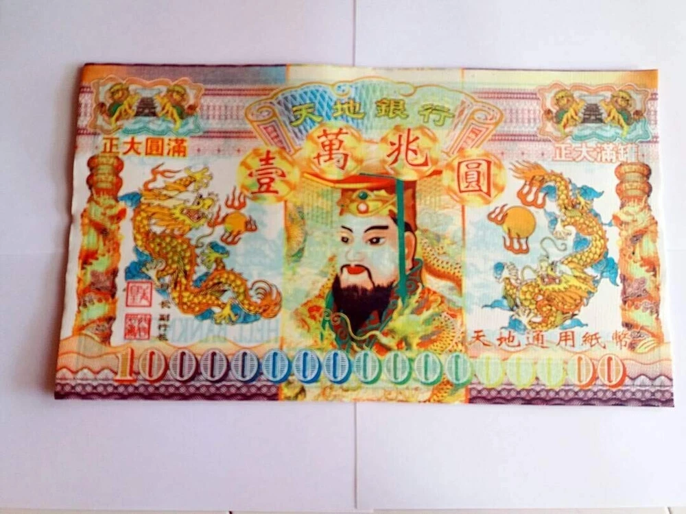 ✅ Hell money is a form of joss paper printed to resemble legal tender bank notes. ✅ This faux money has been in use since at least the late 19th century and possibly much earlier. ✅ Early 20th century examples took the resemblance of minor commercial currency of the type issued by businesses across China until the mid-1940s. ✅ The notes are not an officially recognized currency or legal tender since their sole intended purpose is to be offered as burnt-offerings to the deceased as often practiced by the Chinese and several East Asian cultures. ✅ The identification of this type of joss paper as "hell bank notes" or "hell money" and singling them out is largely a western phenomenon, since these items are simply regarded as yet another form of joss paper in East Asian cultures and have no special name or status. 💘Joss paper money notes Chinese heaven hell money notes 💛 Size 17.2 Inches x 9.8 Inches 140pcs EXTRA FREE BIG GOLD INGOT 💙 10 QUADRILLION GIANT ANCESTOR 💚These hell bank notes feature an image of the Jade Emperor, the presiding monarch of heaven in Taoism. 🧡The notes are used to burn for the 'Hell Gods,' offering them monetary distraction so they will leave mortals at peace. They are also commonly burned as offerings for ancestors and requests for blessings of prosperity and good fortune. Report incorrect product in