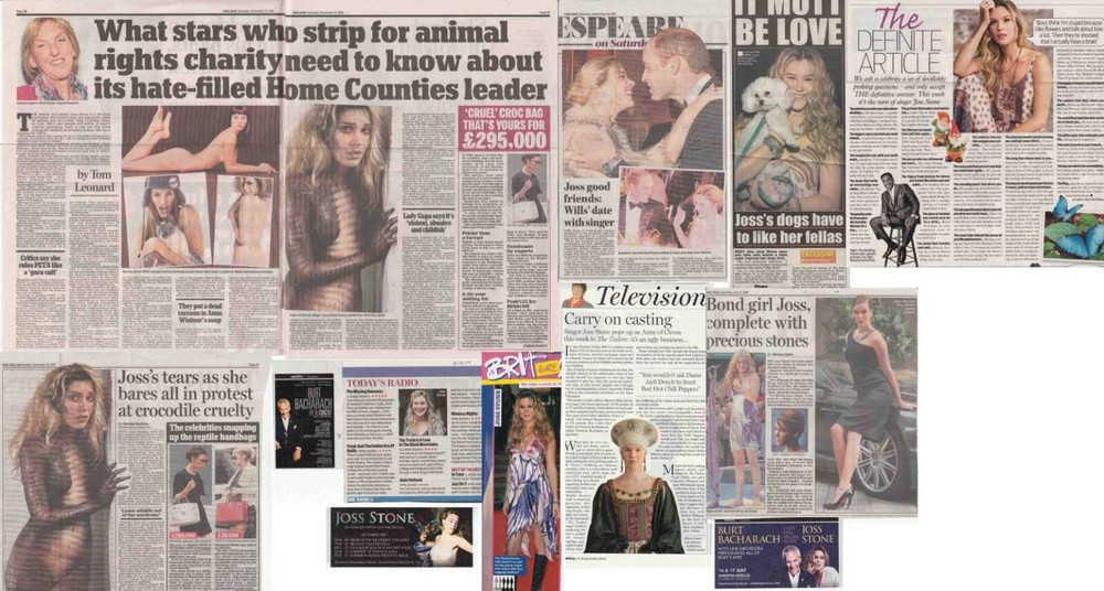 JOSS STONE 12 CUTTINGS all carefully CUT OUT from Newspapers & Magazines such as Daily Mail, Radio Times, Weekend, Daily Star etc. .... includes a 2017 interview article VERY GOOD & EXCELLENT CONDITION the 4 Large Articles are Folded once across the centre will be mailed in a pvc sleeve in a strong card mailing e nvelope I COMBINE SHIPPING