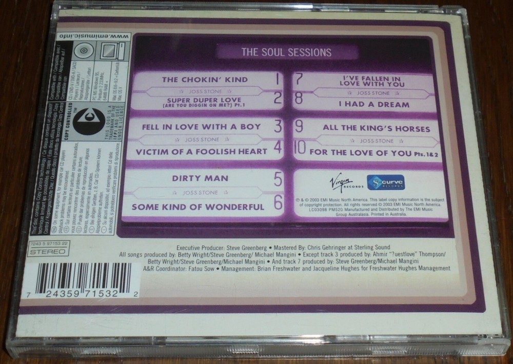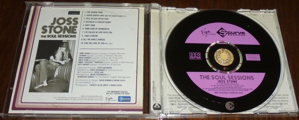 JOSS STONE - THE SOUL SESSIONS -10 TRACK CD- EXCELLENT CONDITION SEE PHOTO NO 2 FOR TRACK LIST HOW MY CD'S AND DVD'S ARE RATED BRAND NEW - NEVER BEEN PLAYED LIKE NEW - NO VISIBLE WEAR VERY GOOD - DISC IS CLEAN GOOD - DISC HAS MINOR MARKS THAT DON'T AFFECT PLAY ACCEPTABLE - DISC HAS SOME MARKS Check out my other items! POSTAGE AND HANDLING: INCLUDES POSTAGE, PACKAGING, PROCESSING FEES ALL MY CD'S COME BUBBLE WRAPPED. PAYMENT WITHIN SEVEN DAYS. FEEL FREE TO MESSAGE ME FOR MORE INFO ON A CERTAIN CD. NEW ITEMS ARE LISTED DAILY. FEEL FREE TO TAKE A LOOK AT MY OTHER ITEMS. I'D REALLY APPRECIATE IT IF YOU COULD LEAVE FEEDBACK ONCE YOU RECEIVE YOUR ITEM! THANK YOU, GOOD LUCK. International buyers For all international buyers, It is very important that you message me first before purchasing your items. Let me know which country you are from and what item you want to purchase. Different countries may vary in postage prices. I can also send cd's internationally without jewel cases for a cheaper postage rate. Please wait for an invoice before paying for your item. Postage may take up to 20 business days. It all depends on which country you are purchasing from. For international customers, PayPal is the only accepted form of payment. Thank you For all international buyers if your package gets lost along the way I will not be held responsible unless you choose to have your item posted with tracking. (Highly recommended) Message me to arrange tracking and I will give you a postage quote.