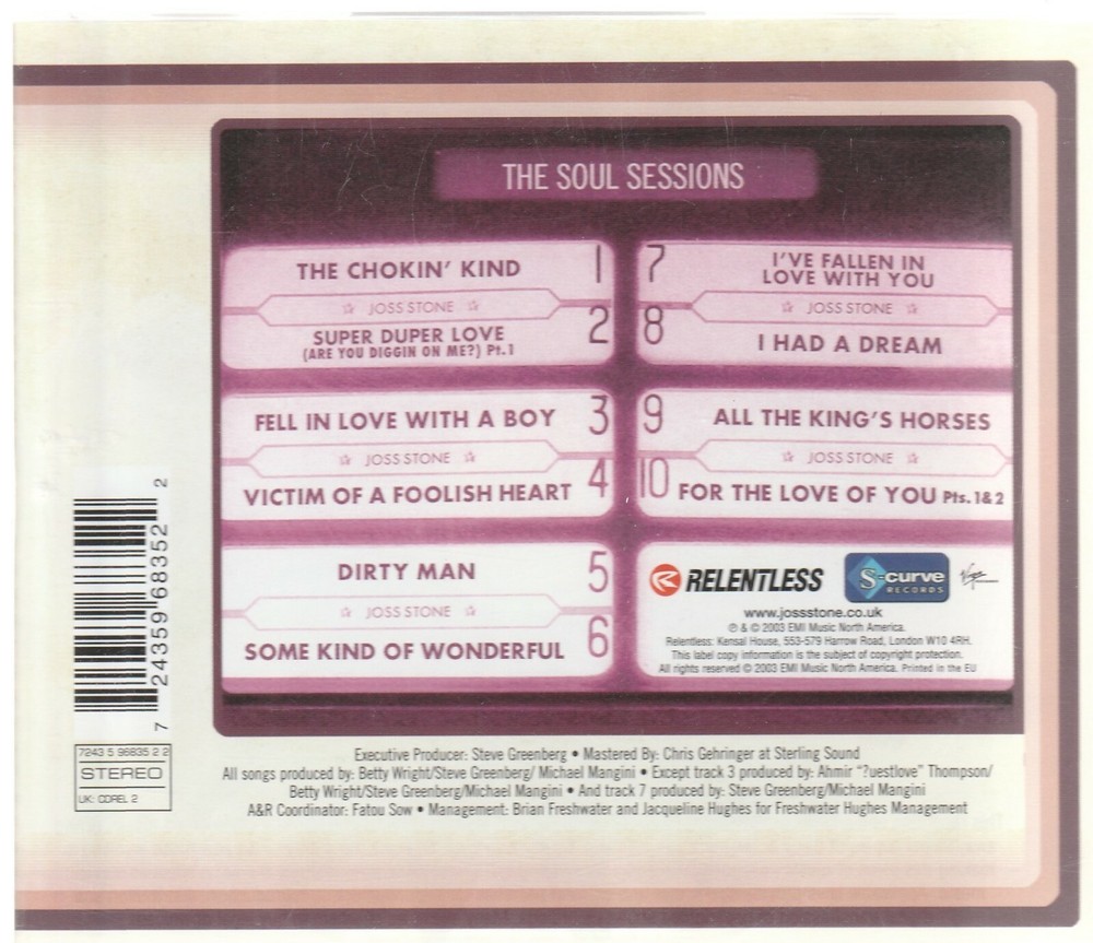 Absolutely love this CD! Joss Stone's voice is pure magic, and the soulful vibes are just timeless. The disc plays flawlessly, and while the case shows some minor wear, it's nothing major. Super happy with the purchase—plus, shipping was fast and reliable. Great deal for any soul music lover!
