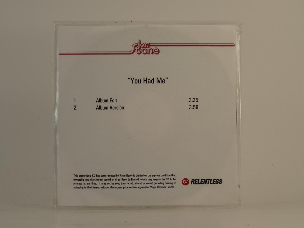 This promo CD is a must-have for Joss Stone fans! The two-track single sounds crisp and vibrant, with "You Had Me" showcasing her soulful vocals perfectly. The white sleeve and artwork are in excellent condition, adding a clean, sleek look. Even though it's pre-owned, the disc plays flawlessly—no skips or scratches. A fantastic collector's piece for any R&B or soul enthusiast!