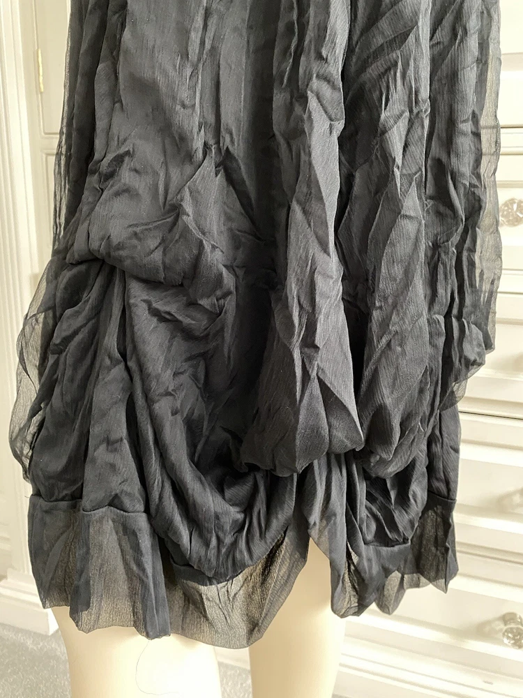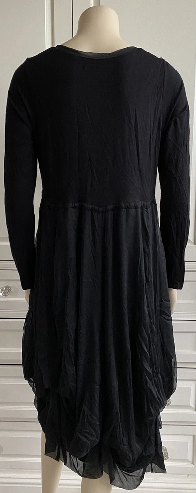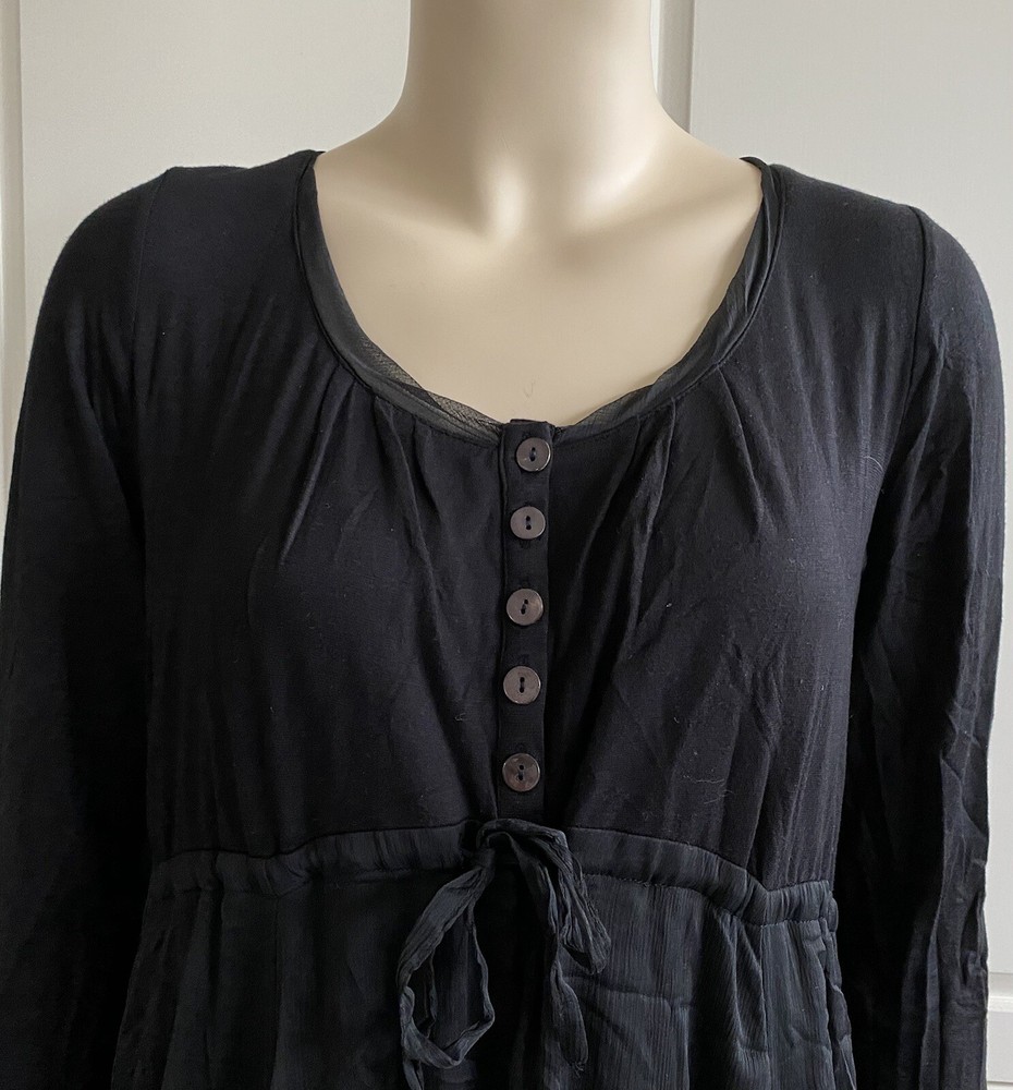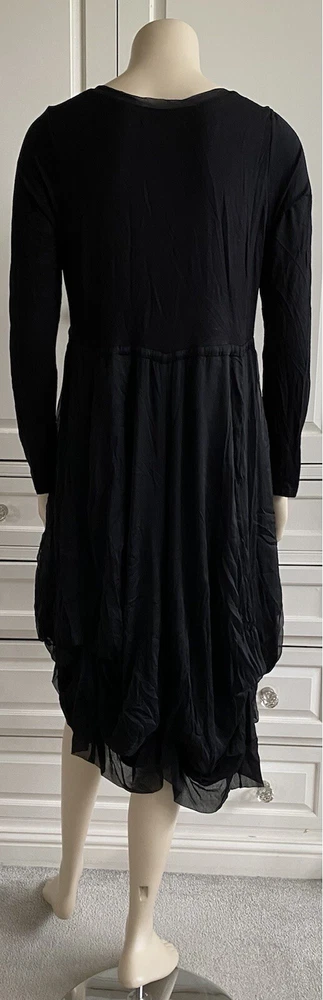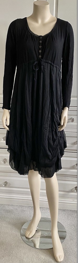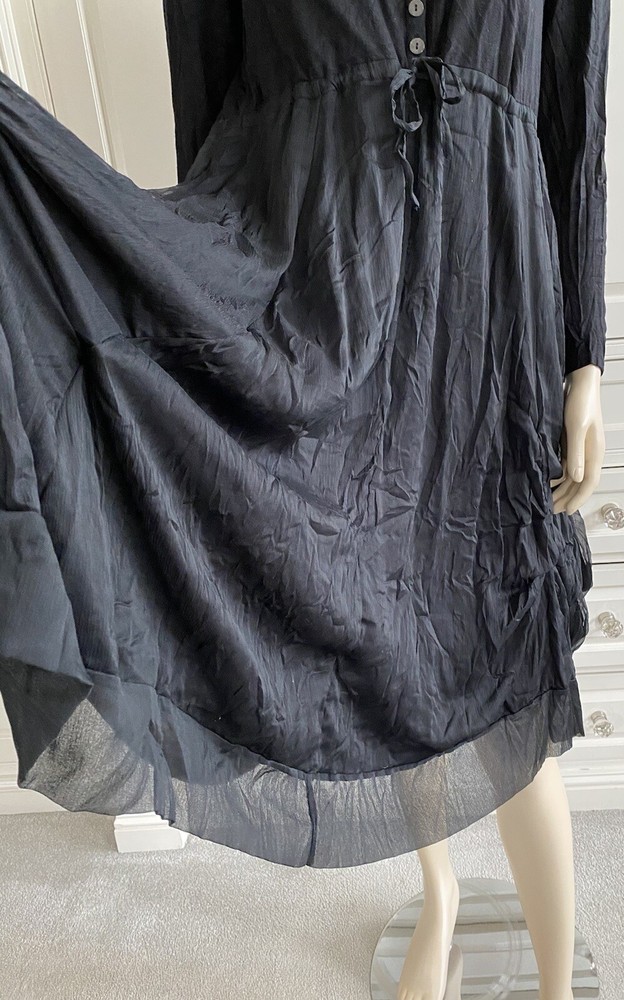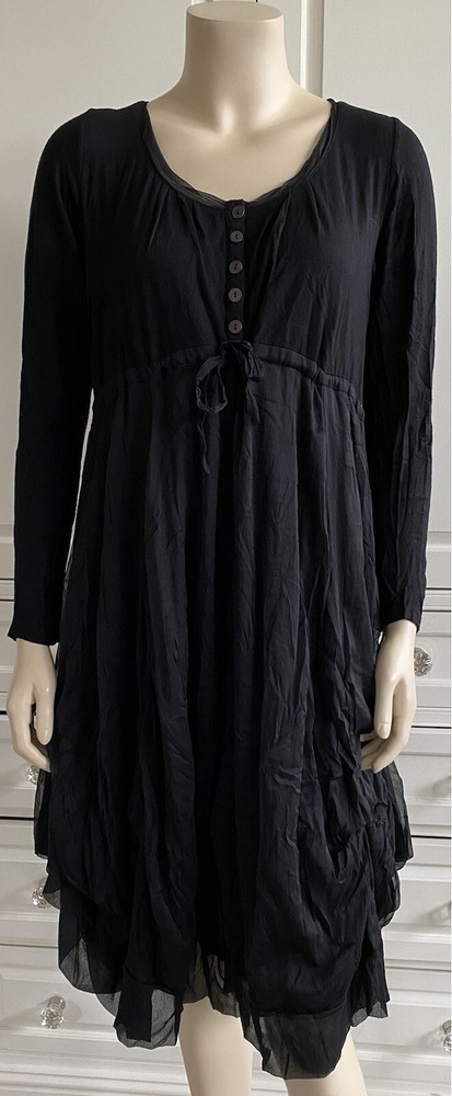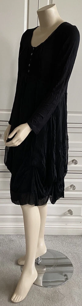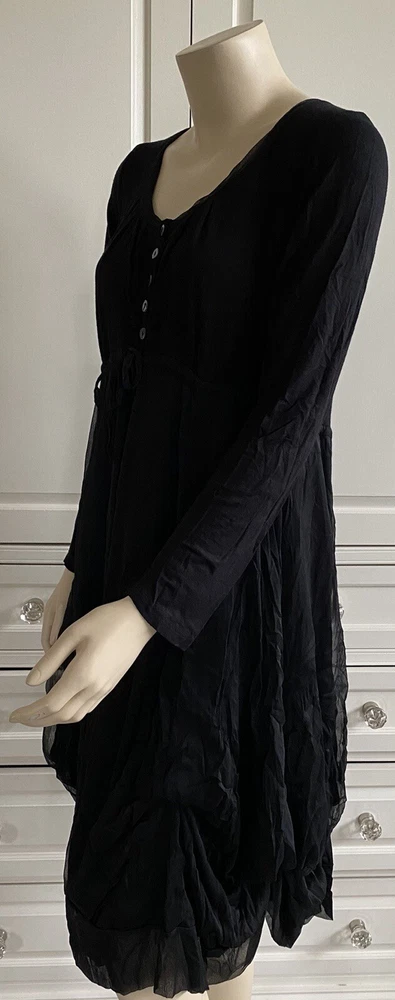 JOSS Timeless and fashionably stunningly stylish, Ladies black, fit and flare stretch dress with a most voluminous skirt. The skirt has a fine silk-like top layer over the jersey fabric, a contrast fabric to the stretch jersey top part & sleeves long sleeves. Under the skirt are numerous thin ties which when made into bows at whatever length you wish will alter the skirt length, make it more bulbous and asymmetrical. MY PHOTOS HONESTLY DO NOT DO THIS DRESS JUSTICE. There is a band under the bust with ties which gather to form a loose or tight bow depending how you wish to wear the dress. OTHER FEATURES INCLUDE: * long sleeves * round neck line * button fastening on top front * NO pockets * lined in double thickness fabric * asymmetrical hem line Size: M/L on the label - UK12 - but it does depend on how tight or loose you like to wear your clothing, your bust size and your stature - PLEASE CHECK MEASUREMENTS BELOW AGAINST A DRESS OF YOUR OWN . My mannequin modelling this dress is a small busted (32-34C) standard UK10, closer to a UK8 than a UK12 and it is too large for her. ACTUAL MEASUREMENTS TAKEN, LAID FLAT & UN-STRETCHED ARE APPROX: across front underarm seam to underarm seam - 17.5" wide across band under the bust - 16" wide length down the centre back - 40" long Offered in excellent, lightly worn, pre-owned condition. Grab yourself a genuine Designer bargain at a fraction of its original Designer recommended retail price - you really will not be disappointed. PLEASE CHECK MY OTHER ITEMS FOR FABULOUS DESIGNER ITEMS REGULARLY UPDATED THANK-YOU ************************************************************************* PLEASE NOTE ALL BUYERS Please bid in confidence that all the items I am about to offer - Brand New, Designer, Fashionable, Top High Street, Vintage, Hardly Worn & Used are all GUARANTEED AUTHENTIC and items I would happily bid for myself. I shall be as honest as possible with my descriptions and any mark or flaws, if any, will always be pointed out to you - I meticulously check my items for you when I am listing them (they are sent out as described). Where items are shown with other items of clothing in the picture, this is for display purposes and only the item described is included in the auction. Sales are final - I cannot refund on an item if you don't like it (I provide many photos with a vivid description to help you decide if you want to bid), it doesn't fit (measurements are included in my description and I suggest you check them against items from your own wardrobe before placing a bid) or you have changed your mind - please only bid if you are serious to purchase. In the event you are unhappy with your purchase, please make contact with me first so that we can discuss any issues that have arisen from the transaction, before contacting eBay - I will do my best to help you. If a mutual agreement is made to cancel a transaction through no fault of mine, the Buyer is responsible for the return postage. If I have made a gross error in my listing or the item has been sent 'not as described / faulty', I am happy to refund fully together with return postage on the condition the item is returned to me in the same condition it was sent out in. I will happily combine postage & reduce postage price for multiple purchases. I aim to dispatch within 72 hours of CLEARED payment. Please feel free to ask me any questions you may have and look at my other listings - there just may be something else you like. OVERSEAS BUYERS - POSTAGE PRICE DETAILS Postage price quoted in listing is for within UK only. I am happy to post abroad but I do NOT post to all countries - please check before you place your bid that I am happy to post to your location. Postage price abroad is NOT the same as postage price within the UK - please check postage price before you bid as I ONLY post by EBAY'S GLOBAL SHIPPING PROGRAMME and NOT by standard airmail. Thank-you for looking.