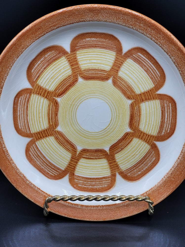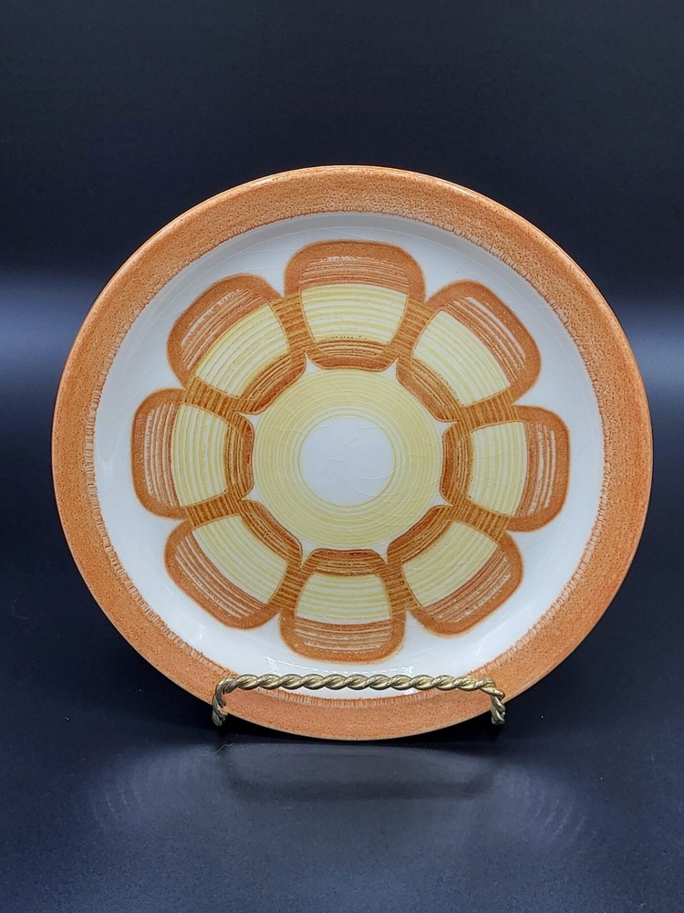 Jamestown China MCM Yellow Orange Mod Dessert Plate 7" is preowned and has crazing....