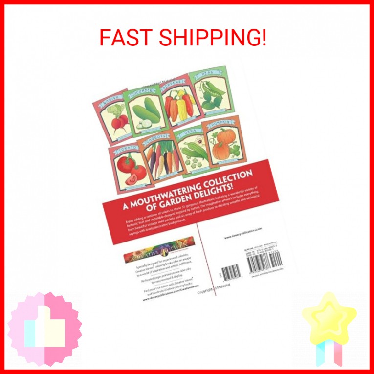 | Synopsis | Thirty-one gorgeous illustrations feature dozens of fresh fruits and vegetables, from beautiful vintage seed packets and a rainbow of fresh produce to dazzling wreaths and whimsical sayings with delightful decorative backgrounds., Cultivate creativity as you color this mouthwatering collection of homegrown delights! Thirty-one gorgeous illustrations feature dozens of fresh fruits and vegetables in a wonderful variety of pretty patterns and unique arrangements. The imaginative nature-inspired designs include everything from beautiful vintage seed packets and a rainbow of fresh produce to dazzling wreaths and whimsical sayings with delightful decorative backgrounds. The art is printed on one side only, and the pages are perforated for easy removal and display. |