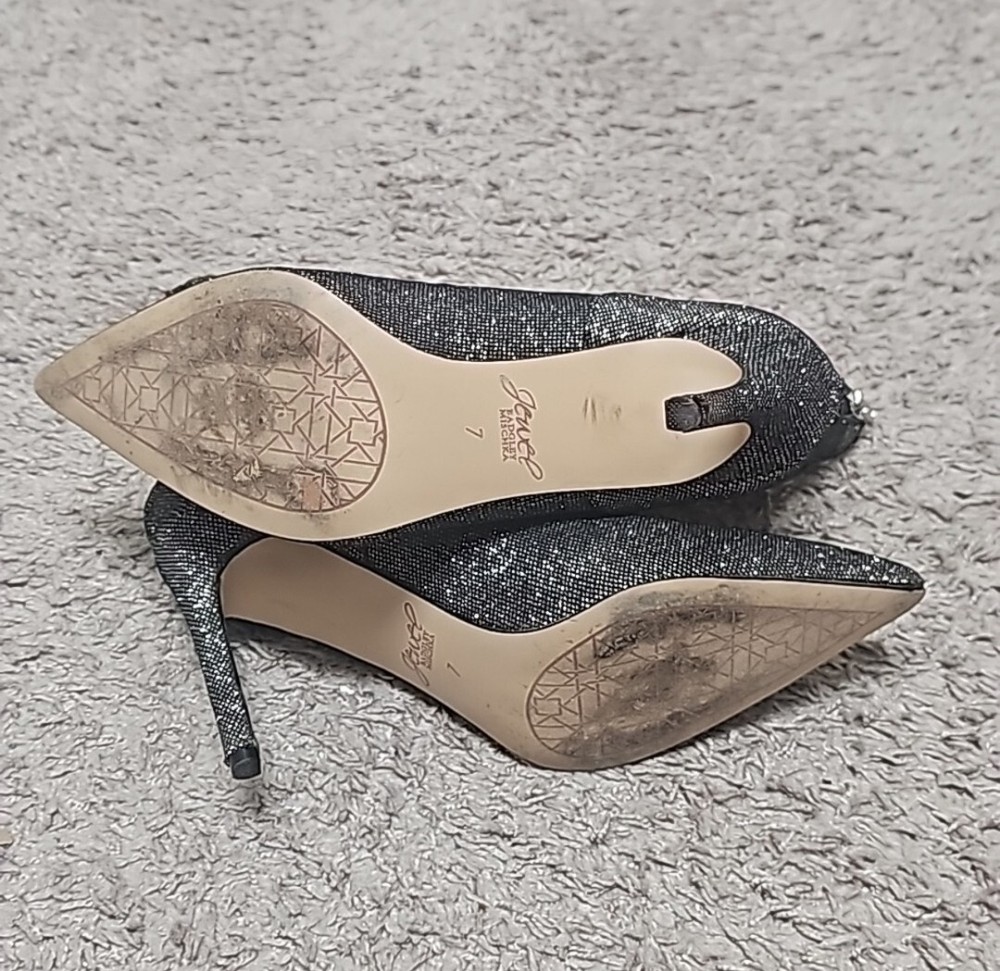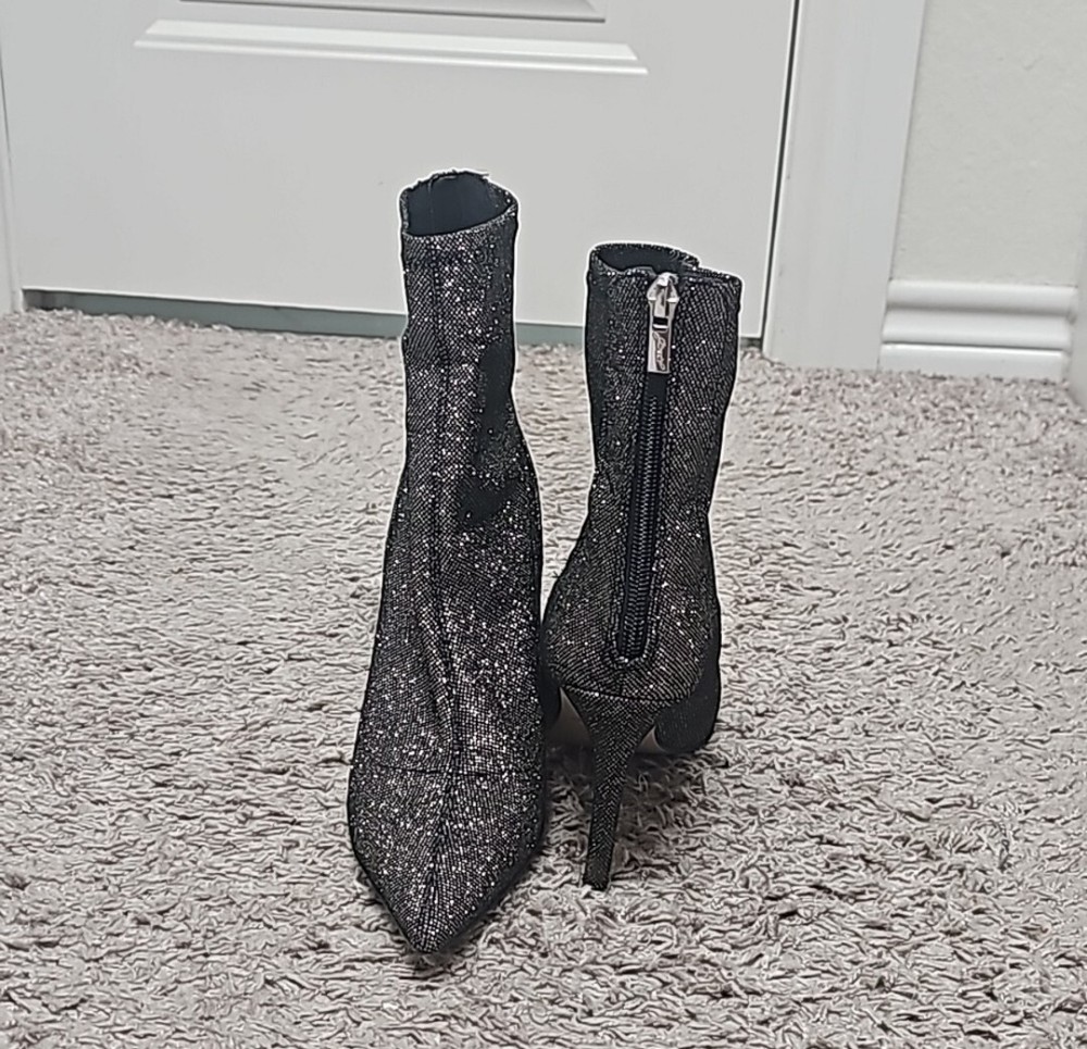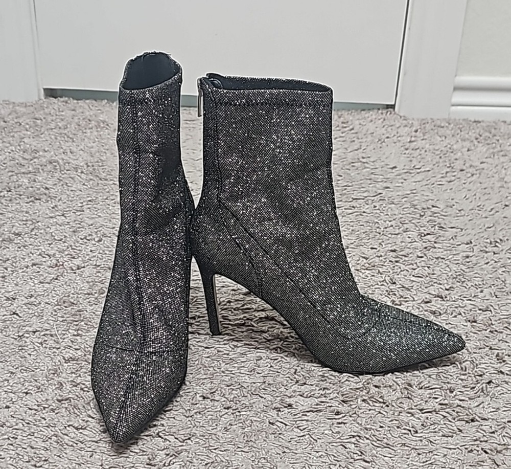 Elevate your evening outfit with these stunning Badgley Mischka booties. Designed with a pointed toe and stiletto heel, these silver fabric shoes are perfect for any occasion, whether it's a party, casual outing, or formal event. The high heel adds a touch of glamour to your look, while the Badgley Mischka model is sure to turn heads. These women's booties are comfortable to wear, with a US shoe size of 7. The upper material is made of high-quality fabric, making it durable and long-lasting. Add these beautiful shoes to your collection today and complete your outfit with style.