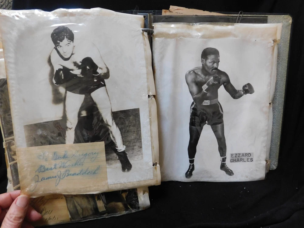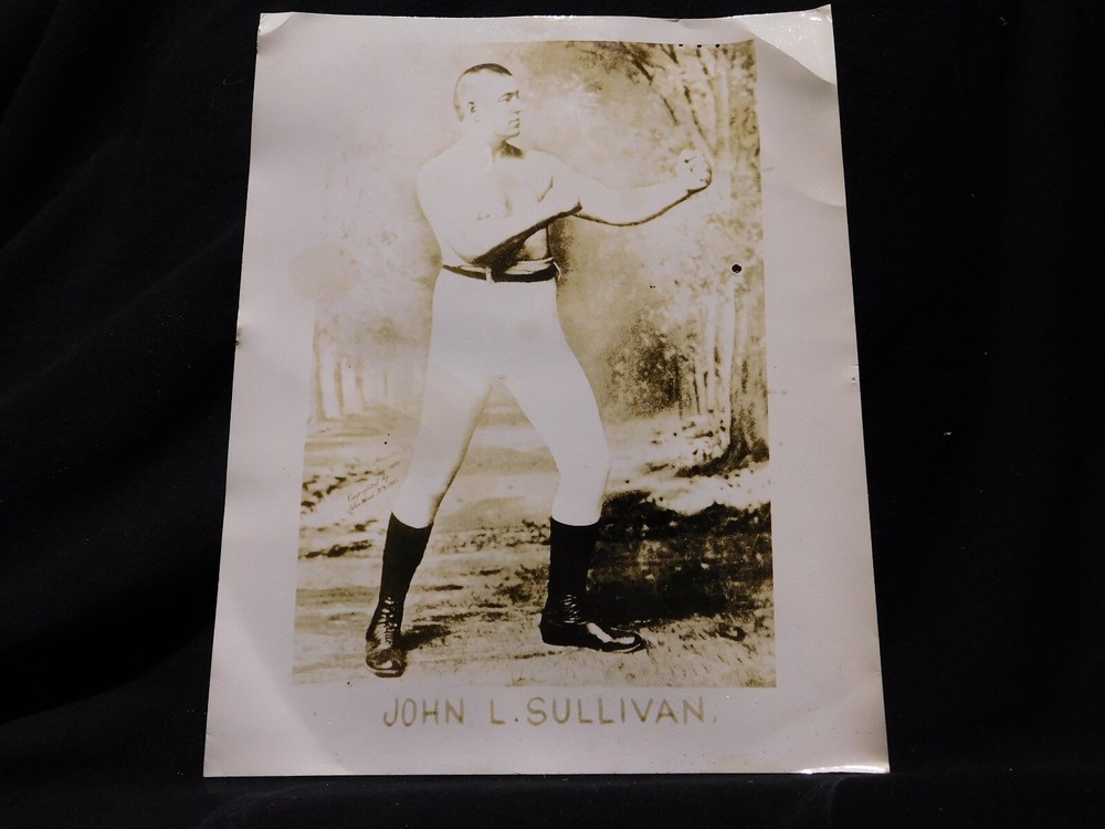 John L. Sullivan 8" x 10" B&W Photo *ONE Part of a BIG collection* READ! The 1904 John L Sullivan Autograph sold on 12/22/22 for $1700. so you know that these are genuine!! **ONE Part of a big collection** Read!!!!. Rescued from a basement that flooded at one time. A full binder of priceless and rare boxing autographs. This Listing does NOT include anything in the binder shown in the last 13 photos. Some of the photos have warping or missing spots and some of the autograph's ink may have some bleeding, as shown. Please check all photos and ask questions. *You must be on Ebay for at least a year and have at least a 98% feedback rating and have a valid cell phone number to make a "Best Offer" over $300. I will be listing everything in the binder. It will be shipped in a plastic sleeve and in between 2 pieces of cardboard. Because the U.S.P.S. will NOT insure something this valuable, you will need to have it shipped with your own shipping account or pick up in Richmond, Va.