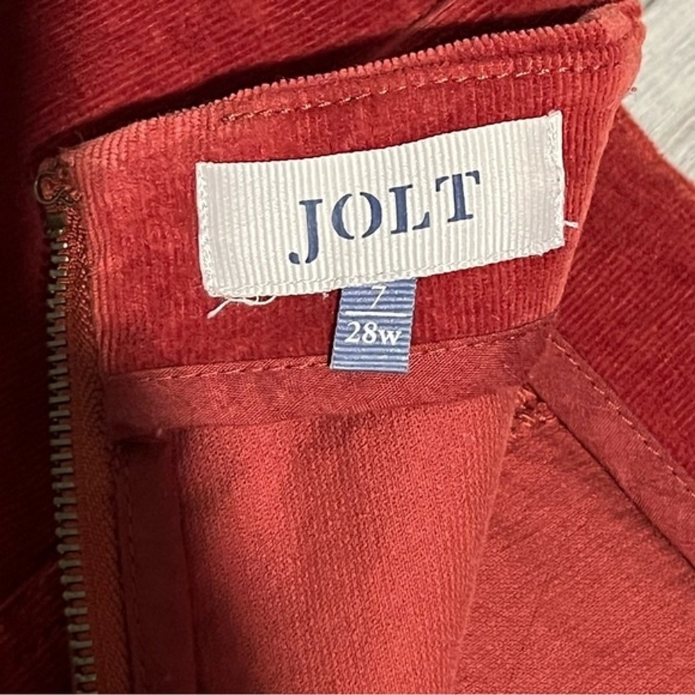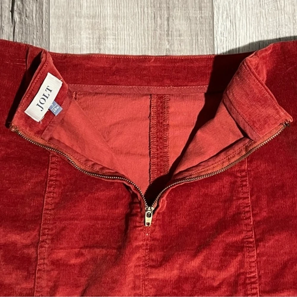 Jolt Women’s Burnt Orange Corduroy Mini Skirt Size: 7/28W Condition: Excellent Used Condition. Only worn once!! Materials: 97% Cotton & 3% Spandex. • Perfect skirt for Fall & Winter! Makes a very cute holiday outfit! • Corduroy Fabric • Soft and stretchy material • Back zipper closure. • STYLE# T6357J7X2TJ Waist: 28” Length: 15.5”