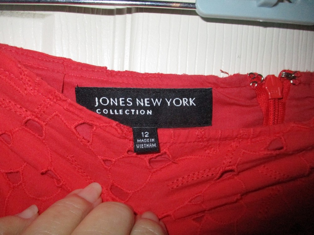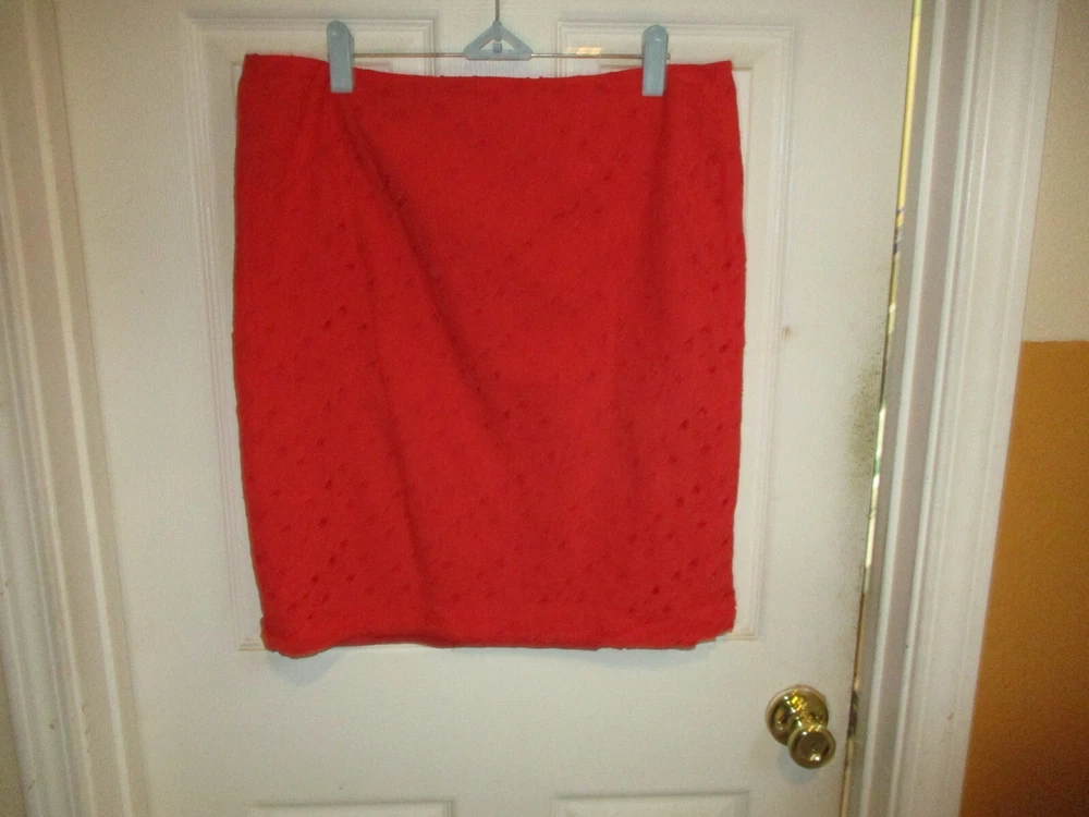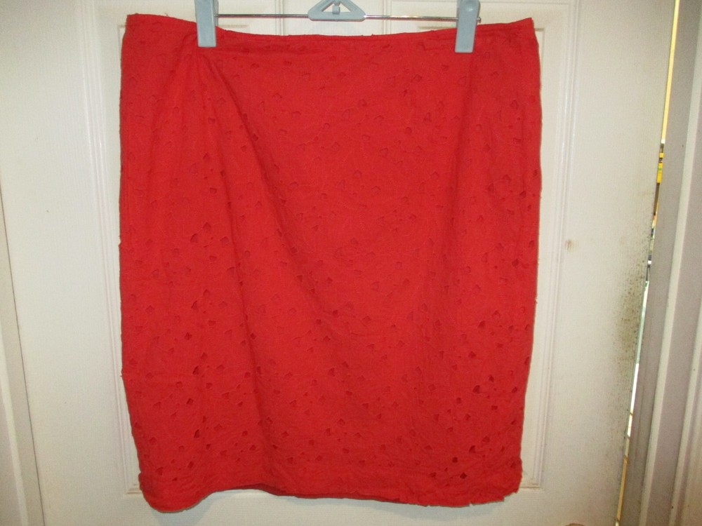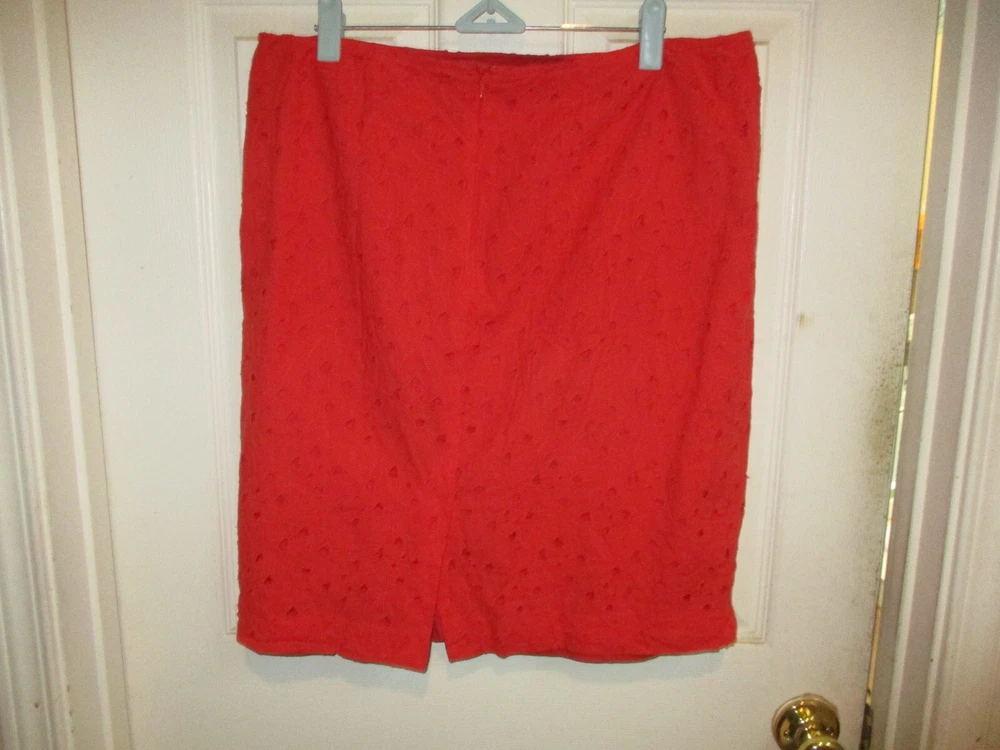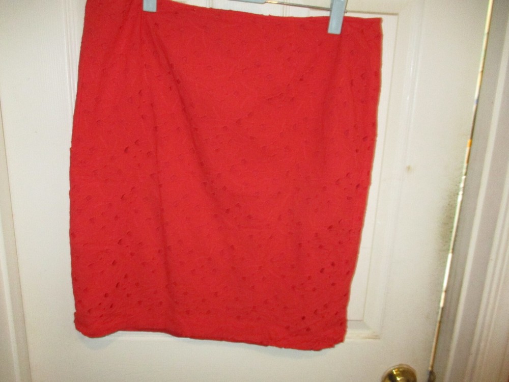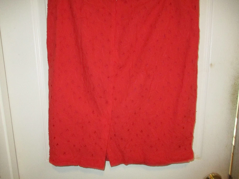 Jones New York Signature Women's Orange Eyelet Knee length Linen Skirt 12. Lovely condition, skirt looks like new, pretty bright orange color, an orange with a little red in it, nice eyelet fabric, Skirt is clean, Classy looking, no tears, stains, or odors, shops and home here are scent free, no smoke, pets, or perfumes. USPS or UPS shipping will be 7.99, best price and best service will be used and this lovely item will be packaged carefully for safe shipping. No overseas or international, or freight forwarding at this time. I have several collectibles, and treasures and I will be posting new listings often, so please visit my page and check back for updates. Please feel free to ask questions and thanks for looking.