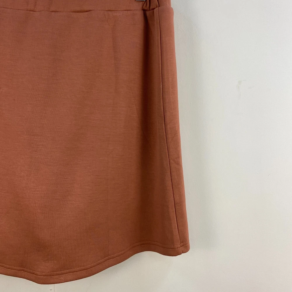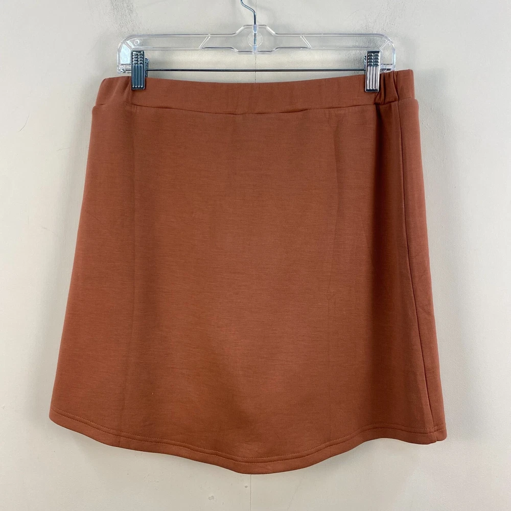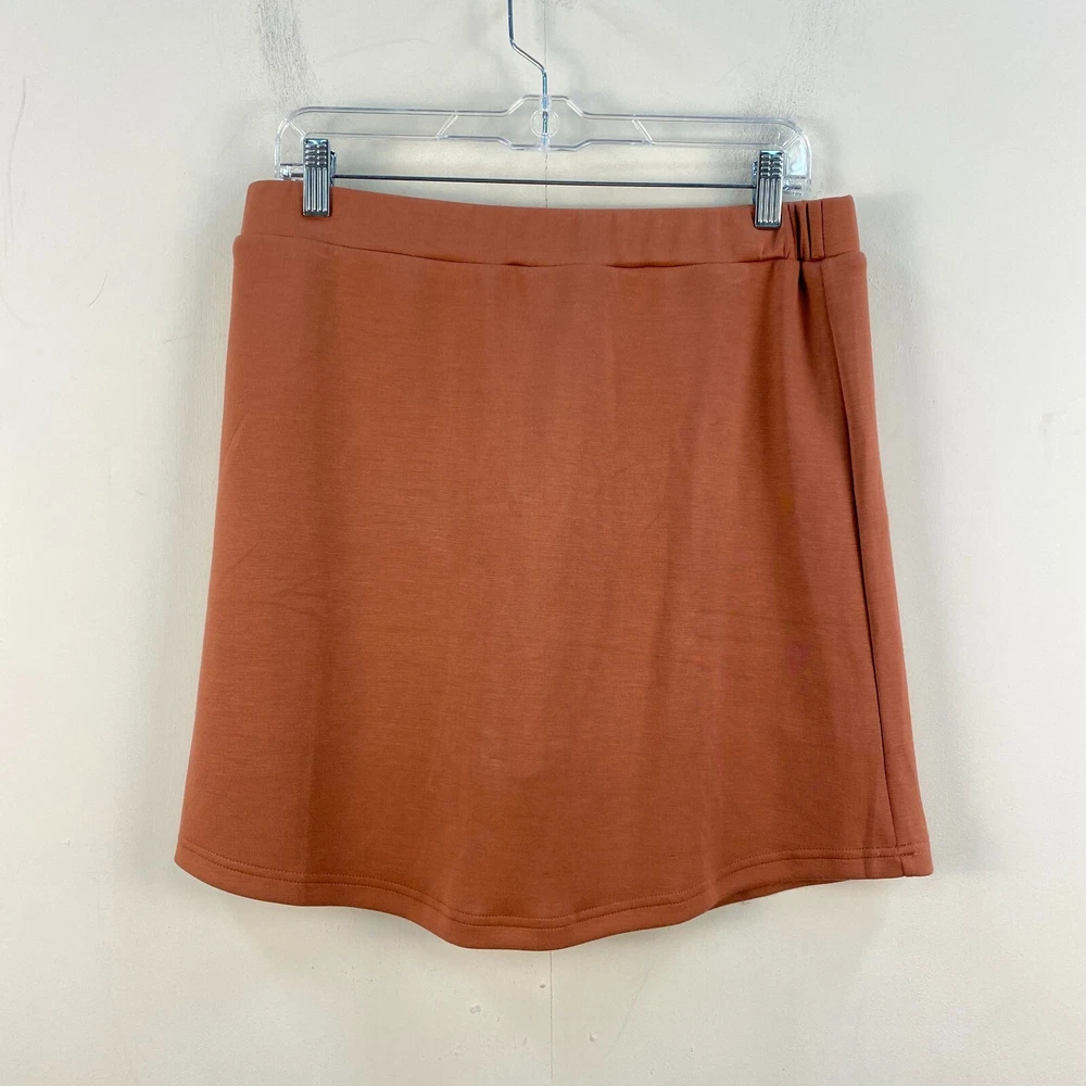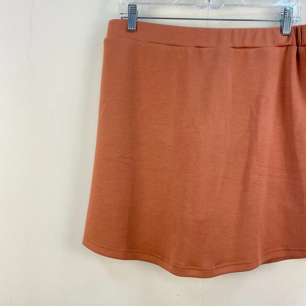 Jones New York Womens Medium Skirt Orange Elastic Waist Mini Shorts Lined 11879 gently used condition measurements(laid flat) waist 16'' waist to hem 17''
